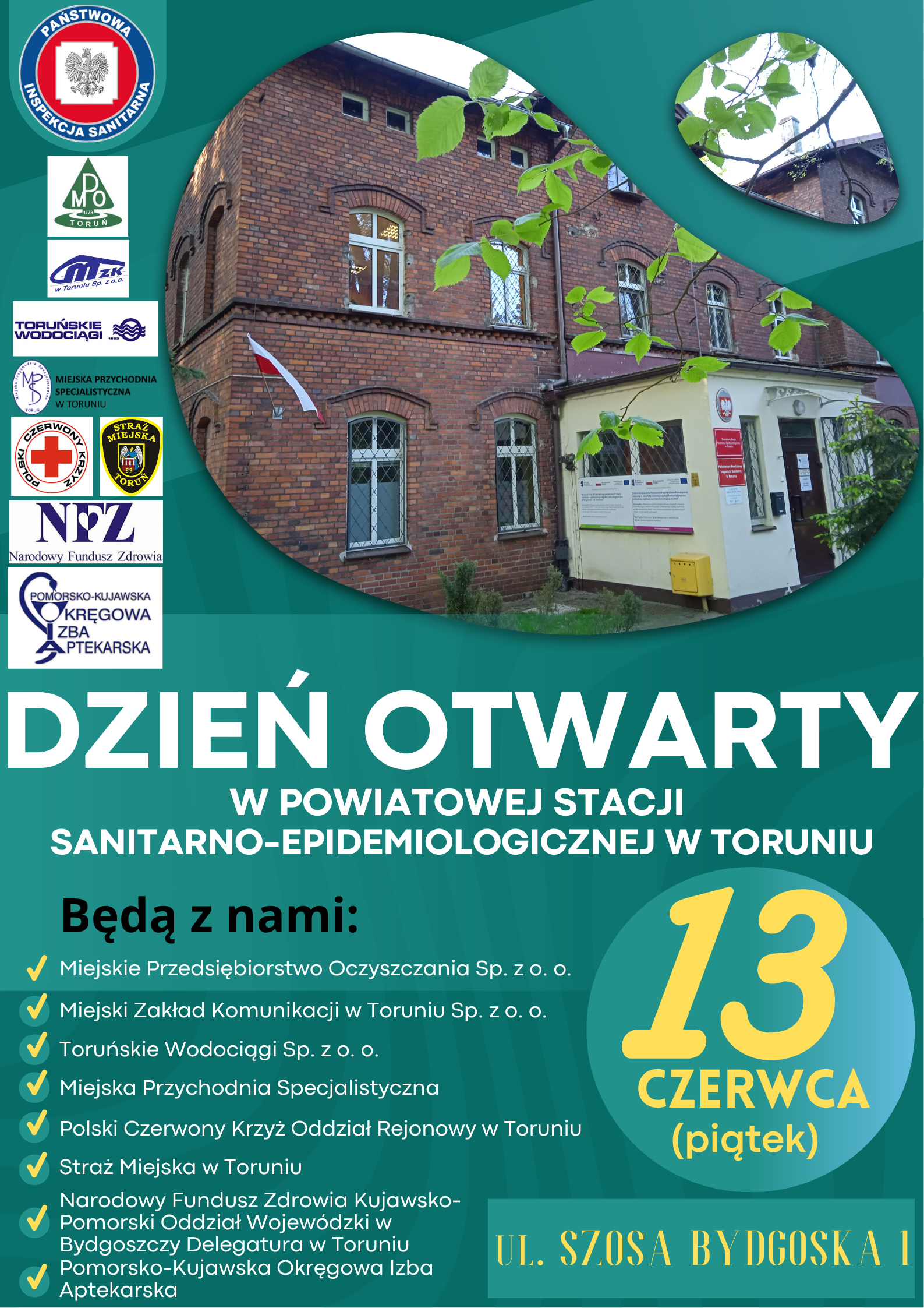 Państwowy Powiatowy Inspektor Sanitarny w Toruniu serdecznie zaprasza do udziału w Dniu Otwartym w Powiatowej Stacji Sanitarno-Epidemiologicznej w Toruniu.