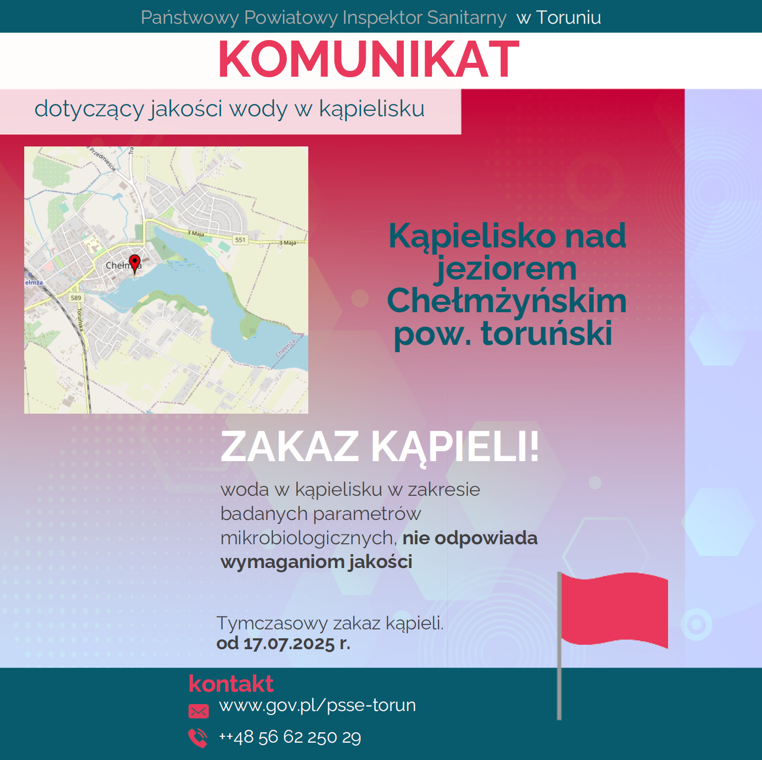 Zakaz kąpieli w Kąpielisku nad Jeziorem Chełmżyńskim od 17.07.2025 r.kąpielisko_j_Chełmżyńskie.pdf 0.76MB