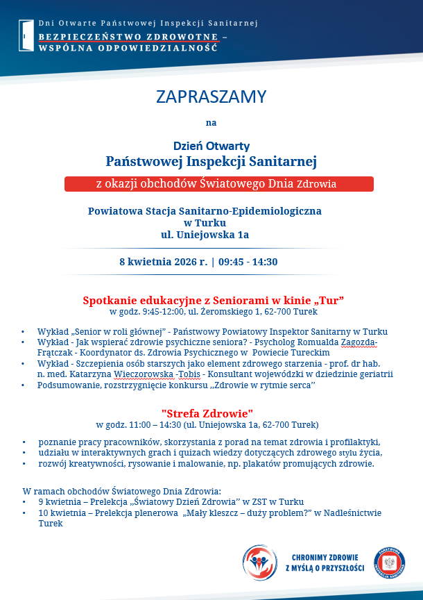 8 kwietnia 2026 r. zapraszamy do udziału w Dniach Otwartych Powiatowej Stacji Sanitarno-Epidemiologicznej w Turku.