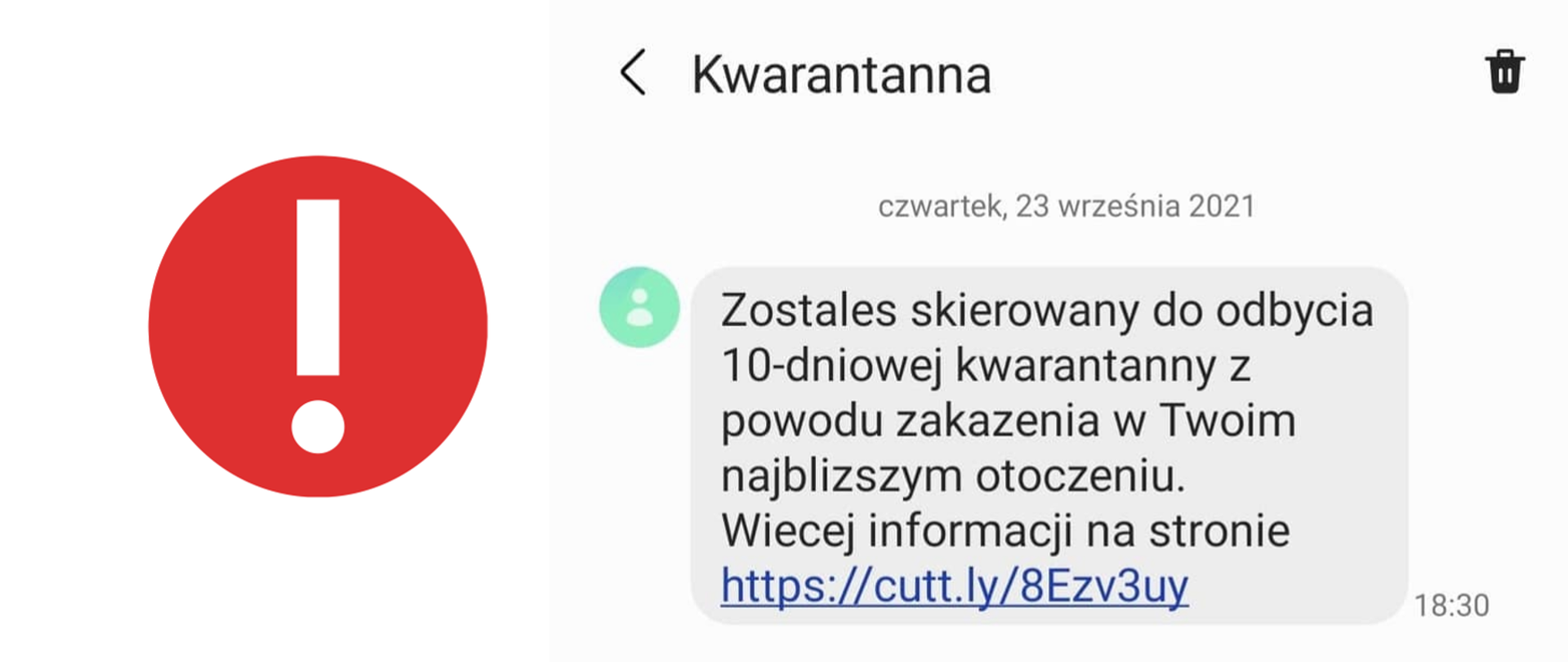 23.09.2021UWAGA! Fałszywe SMS-y od nadawcy Kwarantanna