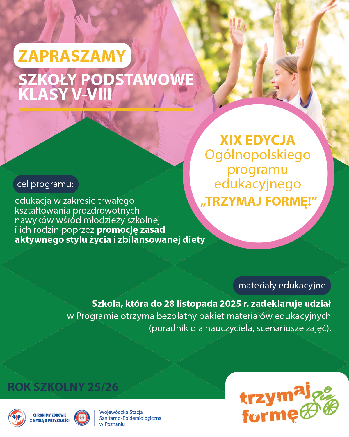 Rejestracja szkół do XIX edycji Ogólnopolskiego Programu Edukacyjnego "Trzymaj Formę!" oraz szczegółowe informacje o programie są dostępne na stronie www.trzymajforme.pl/.