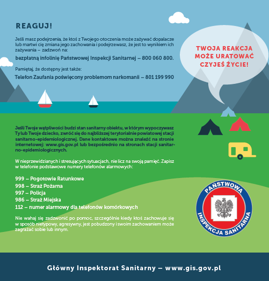 Jeżeli planujesz wakacje nad wodą, zajrzyj na Serwis Kąpieliskowy, aktualizowany na bieżąco w sezonie kąpielowym. Zapoznaj się z zaleceniami dla kąpielisk i miejsc okazjonalnie wykorzystywanych do kąpieli. Podczas spędzania wypoczynku nad wodą upewnij się, że jest to strzeżone kąpielisko lub miejsce wykorzystywane do kąpieli. Czujnie obserwuj osoby kąpiące się, które są pod Twoją opieką. Powiadom ratownika o każdej sytuacji, która cię zaniepokoi.