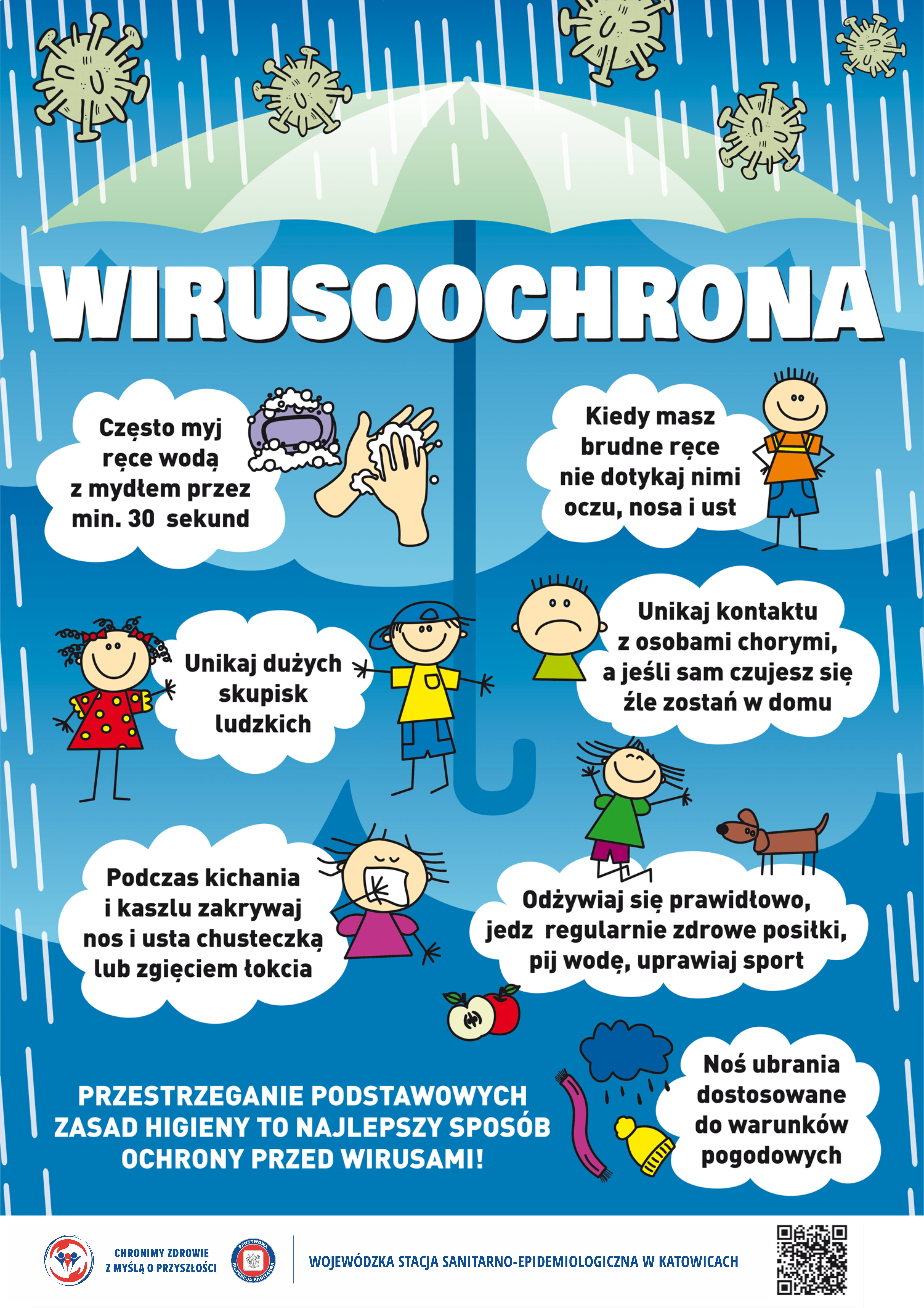 Przestrzeganie zasad higieny osobistej oraz wdrożenie odpowiednich działań profilaktycznych w placówkach szkolnych pozwala ograniczyć zachorowania wśród dzieci oraz zmniejszyć ryzyko przenoszenia wirusów na członków rodzin. W ramach tego procesu przygotowano pakiet materiałów edukacyjnych pt. #LekcjaWirusoochrony.