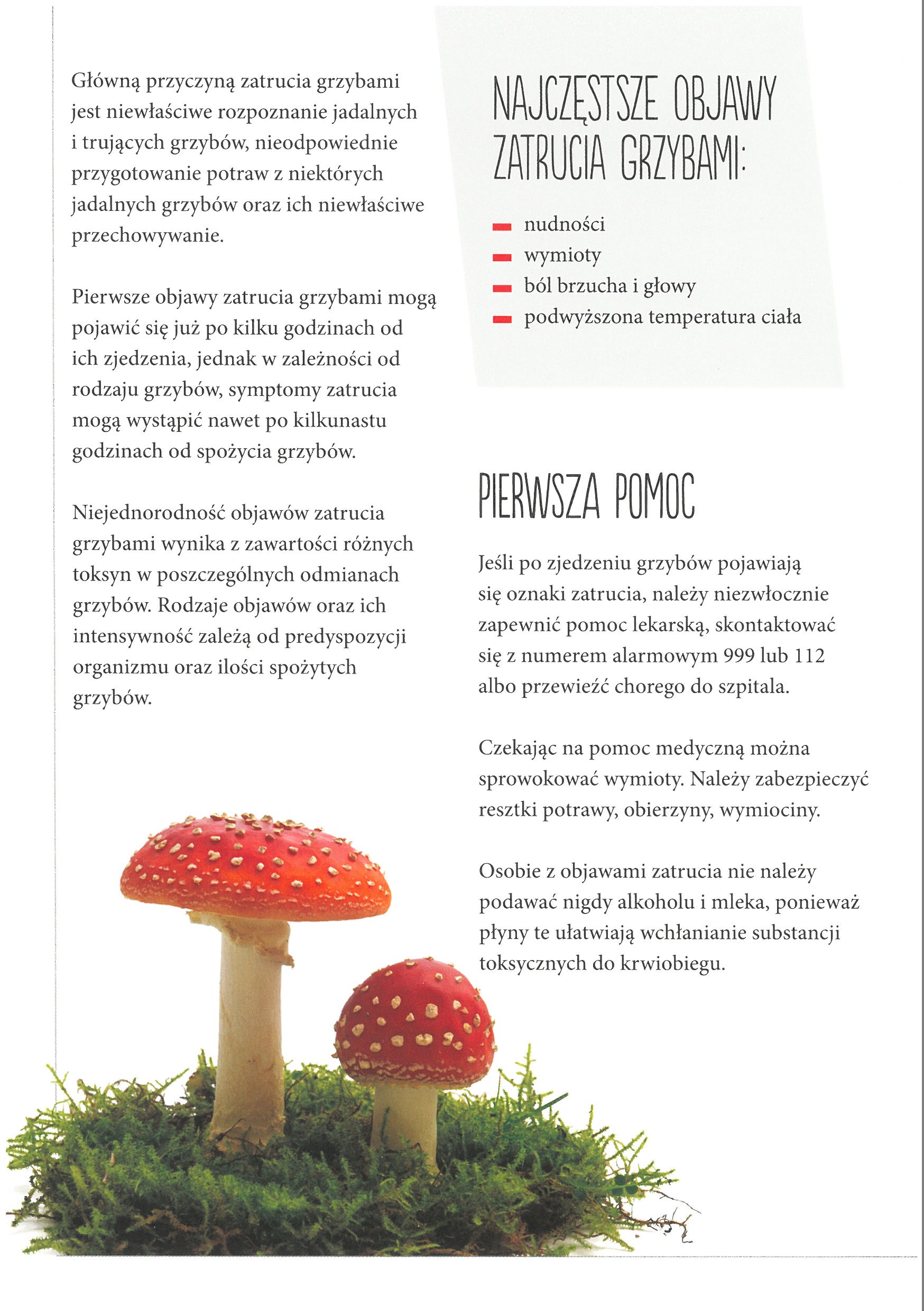 - Jeżeli po spożyciu grzybów pojawią się u Ciebie nudności, bóle brzucha, biegunka, skurcze mięśni, podwyższona temperatura – niezwłocznie wywołaj wymioty i zgłoś się do lekarza.