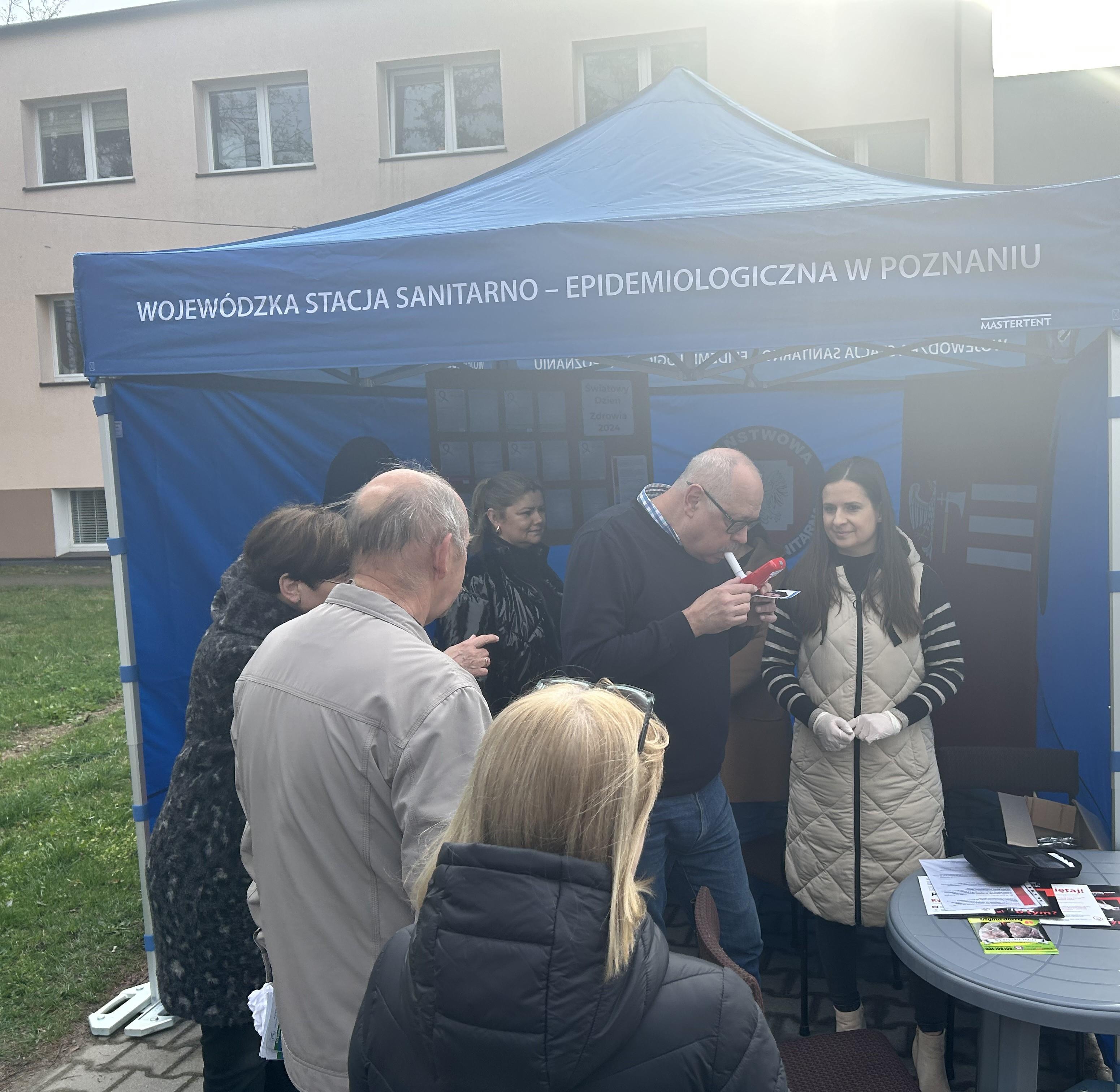 Mieszkańcy powiatu wągrowieckiego, którzy 4 kwietnia br. odwiedzili „czwartkowe targowisko”, mogli przed siedzibą Powiatowej Stacji Sanitarno - Epidemiologicznej w Wągrowcu wziąć udział w akcji zdrowotnej zorganizowanej z okazji Światowego Dnia Zdrowia. Osobom zainteresowanym pielęgniarki z Ośrodka Medycyny Rodzinnej w Wągrowcu bezpłatnie badały poziom cukru we krwi i mierzyły ciśnienie tętnicze krwi. Pracownicy Oświaty Zdrowotnej i Promocji Zdrowia PSSE w Wągrowcu wykonywali pomiary tlenku węgla w wydychanym powietrzu, które pokazują palaczom stopień ich uzależnienia