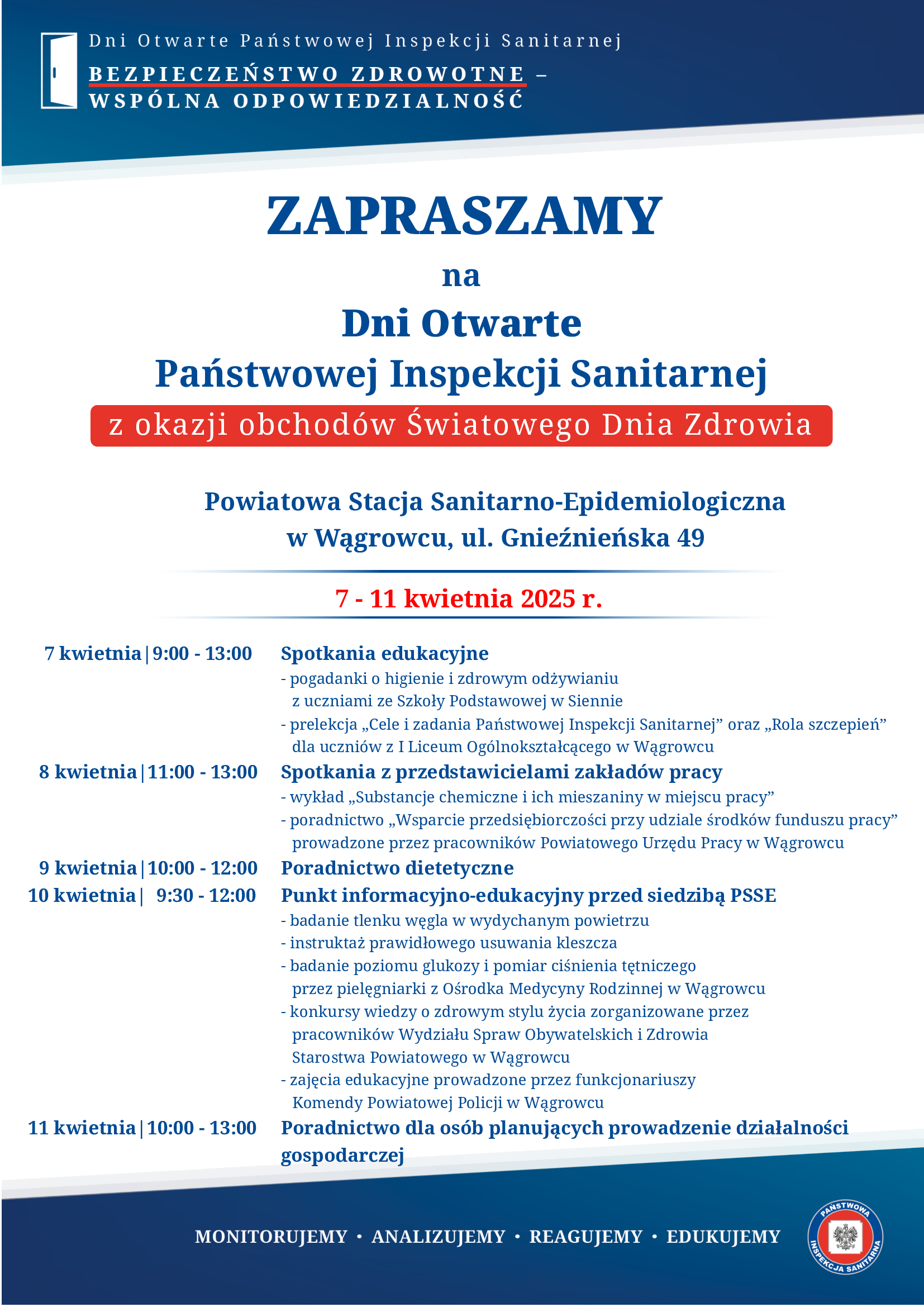 Zaproszenie na DNI OTWARTE Państwowej Inspekcji Sanitarnej 31.03.2025 Zdjęcia (1) Pokaż zdjęcie 1 z galerii.