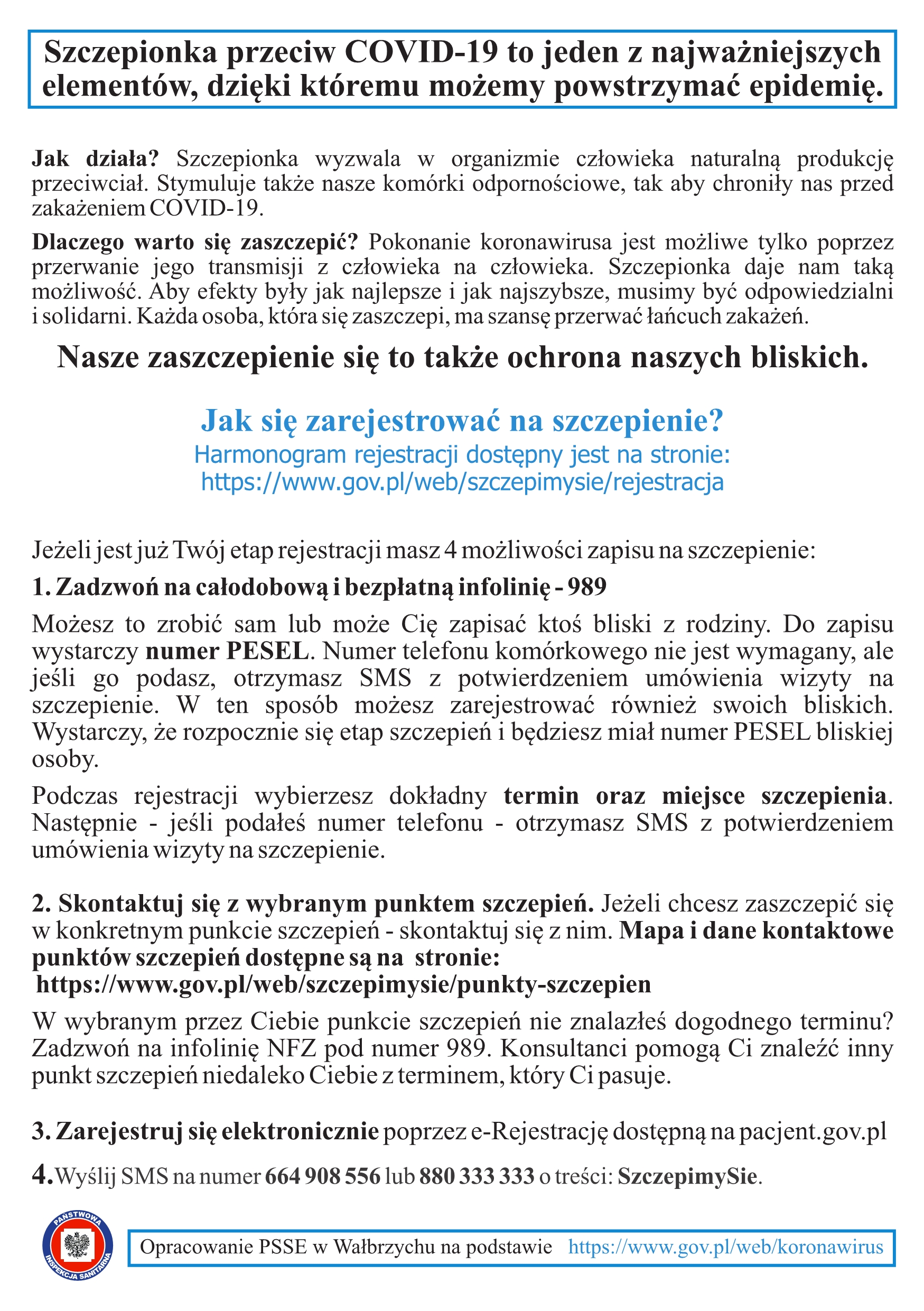 4.Wyślij SMS na numer 664 908 556 lub 880 333 333 o treści: SzczepimySie.
