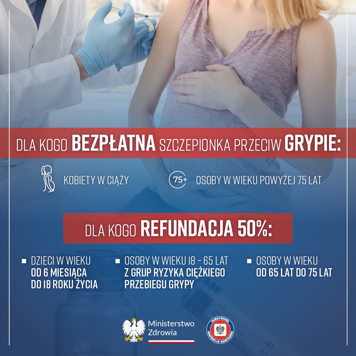 - Dla kobiet w ciąży i osób powyżej 75 roku życia szczepionka jest bezpłatna.
