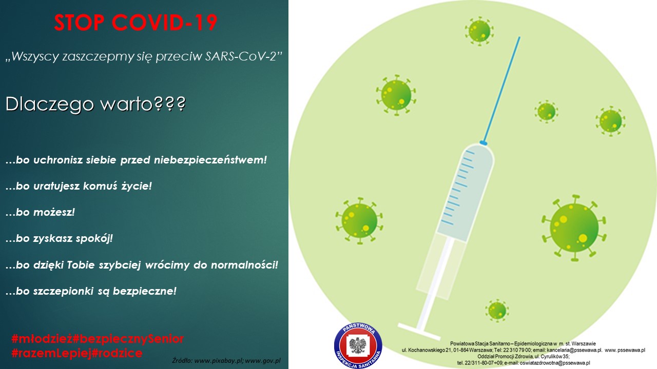 W zakresie profilaktyki SARS-CoV-2 PPIS w m.st. Warszawie prowadzi całoroczne działania informacyjno-edukacyjne poprzez udostępnianie i publikowanie materiałów informacyjno-edukacyjnych o w.w tematyce w mediach społecznościowych.