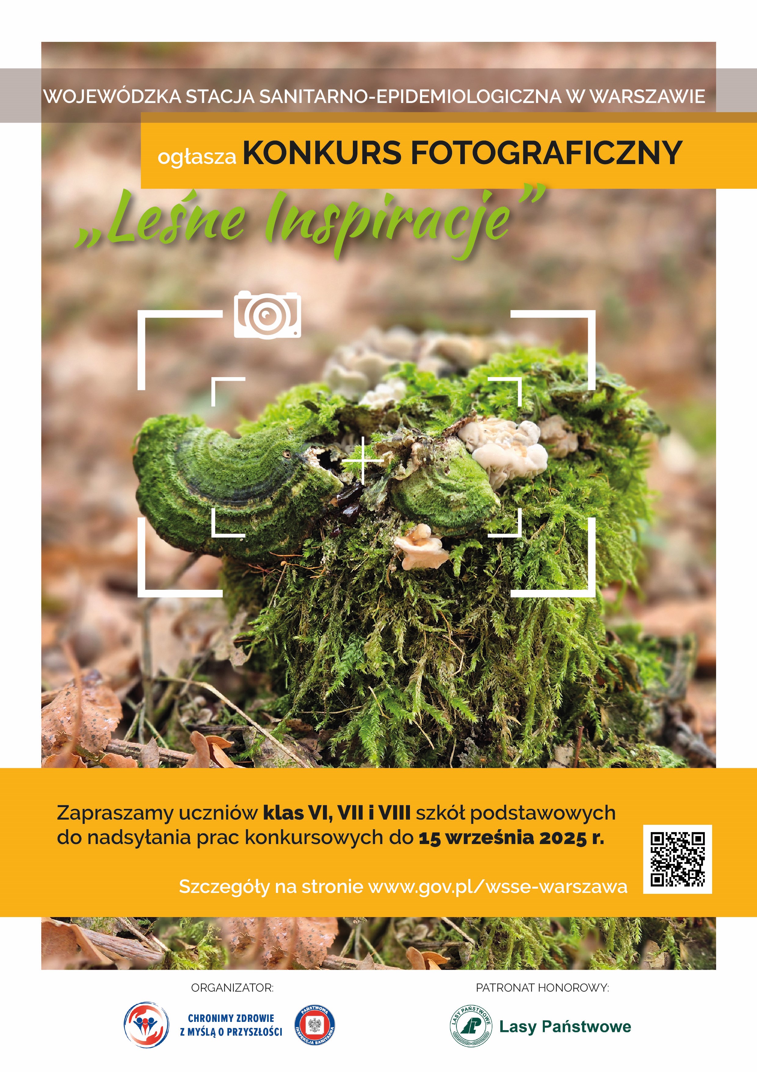 Państwowy Powiatowy Inspektor Sanitarny w m.st. Warszawie zaprasza do udziału w XII edycji Wojewódzkiego Konkursu Fotograficznego pt. "Leśne inspiracje". Adresatami konkursu są uczniowie mazowieckich szkół podstawowych z klas VI, VII i VIII w roku szkolnym 2025/2026.