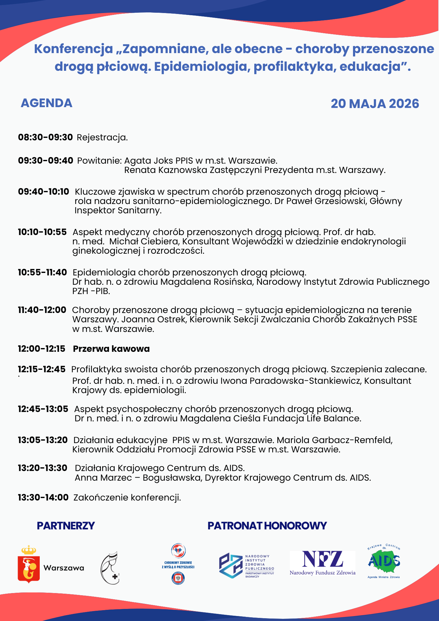Organizatorem konferencji jest Państwowy Powiatowy Inspektor Sanitarny w m.st. Warszawie we współpracy z Urzędem Miasta Stołecznego Warszawy oraz Warszawską Okręgową Izbą Pielęgniarek i Położnych.