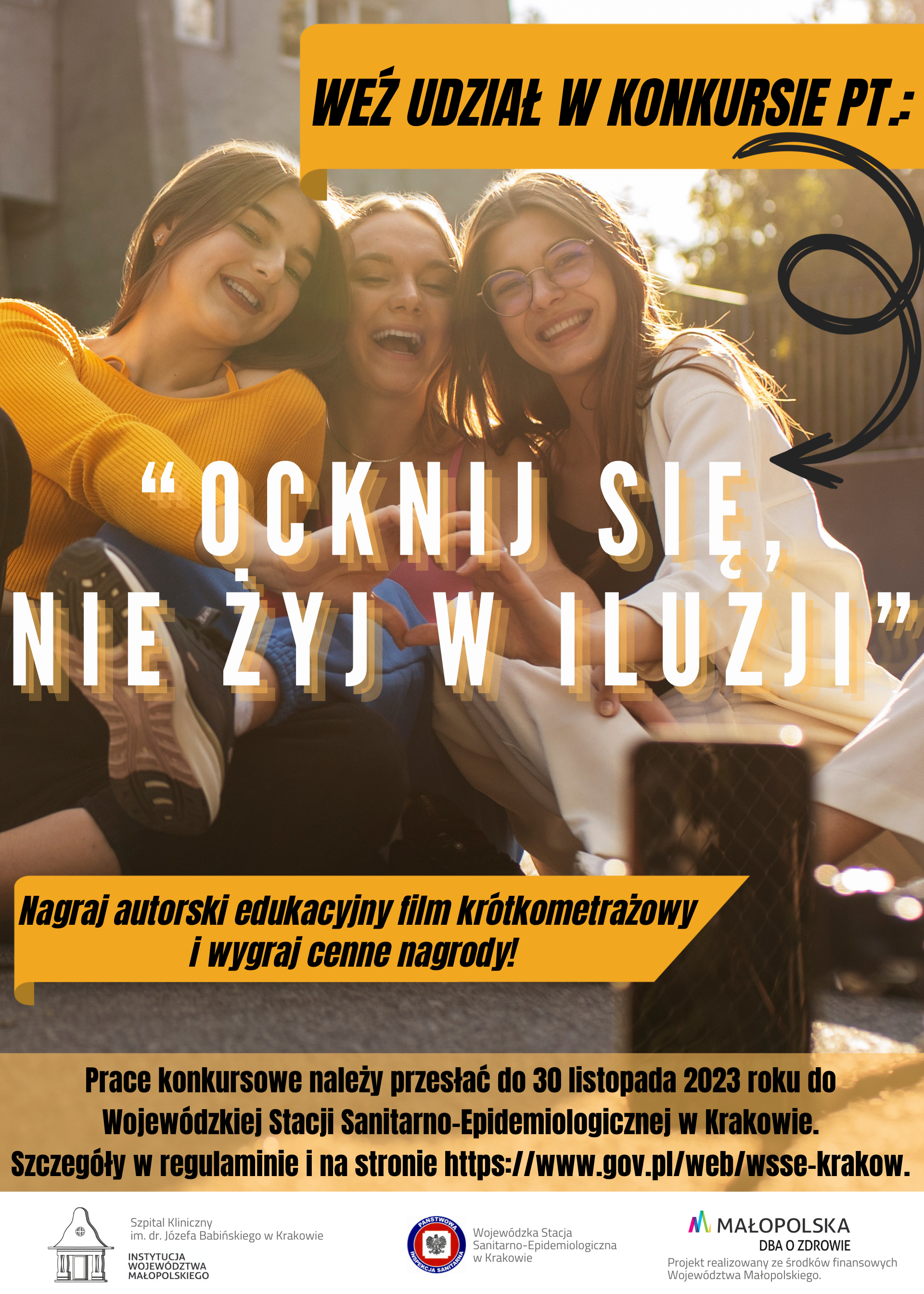 Wojewódzka Stacja Sanitarno-Epidemiologiczna w Krakowie we współpracy z Wojewódzkim Ośrodkiem Terapii Uzależnienia i Współuzależnienia Szpitala Klinicznego im. dr. Józefa Babińskiego SP ZOZ w Krakowie organizują konkurs na film krótkometrażowy pt.: „Ocknij się, nie żyj w iluzji”.