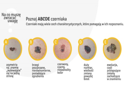 Czerniak złośliwy jest bardzo niebezpiecznym nowotworem skóry. Jednym z czynników ryzyka powstania takiego nowotworu jest promieniowanie ultrafioletowe. Chociaż objawy czerniaka łatwo rozpoznać, to często jednak bywają bagatelizowane. Zawsze kiedy widzisz nowe znamiona, narośla, przebarwienia lub zmiany w już istniejących pieprzykach, jest to sygnał, aby jak najszybciej skonsultować się z lekarzem. Wystarczy zapamiętać kryteria ABCDE, które mogą uratować życie.