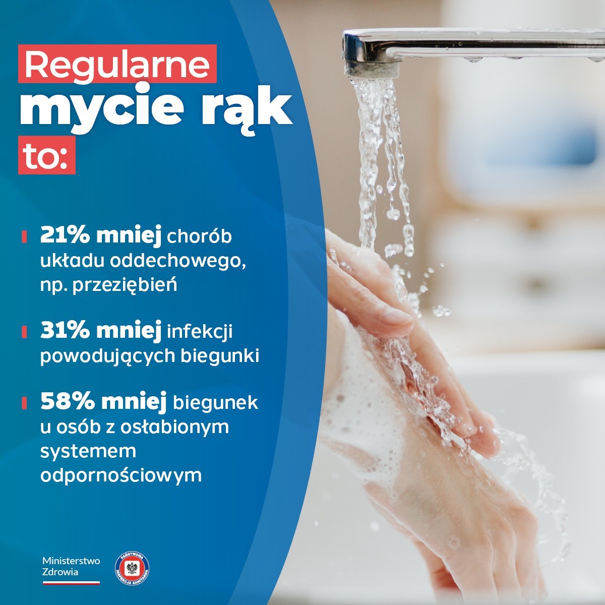 Mycie rąk to prosta, tania i jedna z najbardziej skutecznych metod zapobiegania wielu chorobom. Państwowa Inspekcja Sanitarna promuje właściwe postawy w zakresie profilaktyki zdrowotnej, dlatego regularnie przypominamy o prawidłowym myciu rąk.