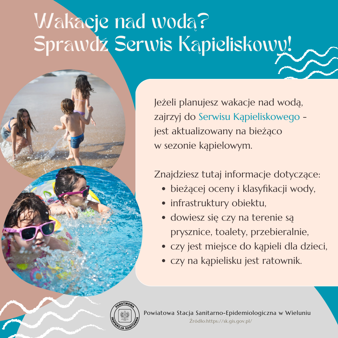 Jeśli wybierasz wczasy nad wodą, koniecznie zajrzyj na Serwis Kąpieliskowy. Znajdziesz tu informacje na bieżąco aktualizowane w sezonie kąpielowym, m. in.o bieżącej ocenie i klasyfikacji wody, uzyskasz informacje o infrastrukturze obiektu, co znajduje się na jego terenie, oraz czy na kąpielisku jest ratownik.