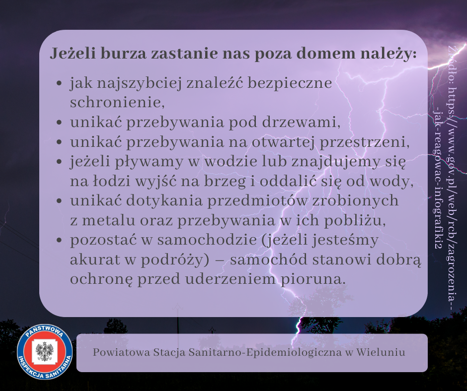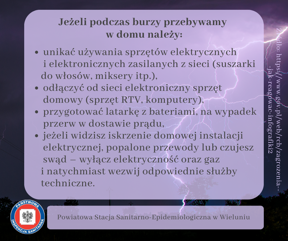 Jeżeli zauważysz, że chmury zaczynają się piętrzyć i mają ciemną podstawę, to sygnał, że istnieje ryzyko rozwoju chmur burzowych. Obserwuj uważnie niebo, aby w razie niebezpieczeństwa odpowiednio wcześnie znaleźć bezpieczne schronienie. To szczególnie ważne w górach lub gdy znajdujemy się na otwartej przestrzeni. W czasie burzy najbezpieczniej przebywać jest w budynku – o ile to możliwe, nie opuszczaj go bez potrzeby.
