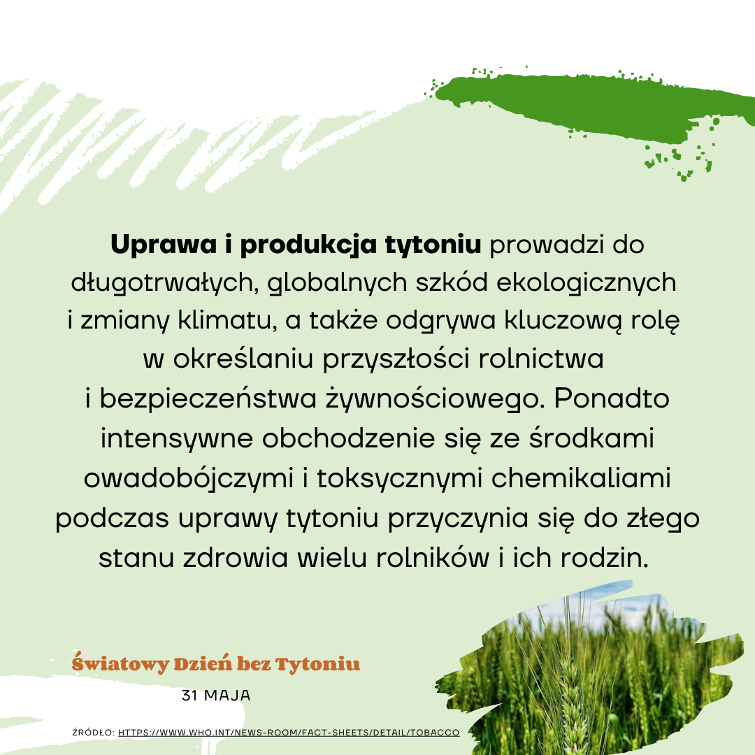 Warto mieć świadomość, że uprawa i produkcja tytoniu pogłębia brak bezpieczeństwa żywnościowego.