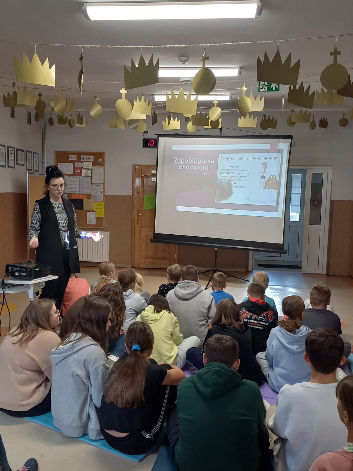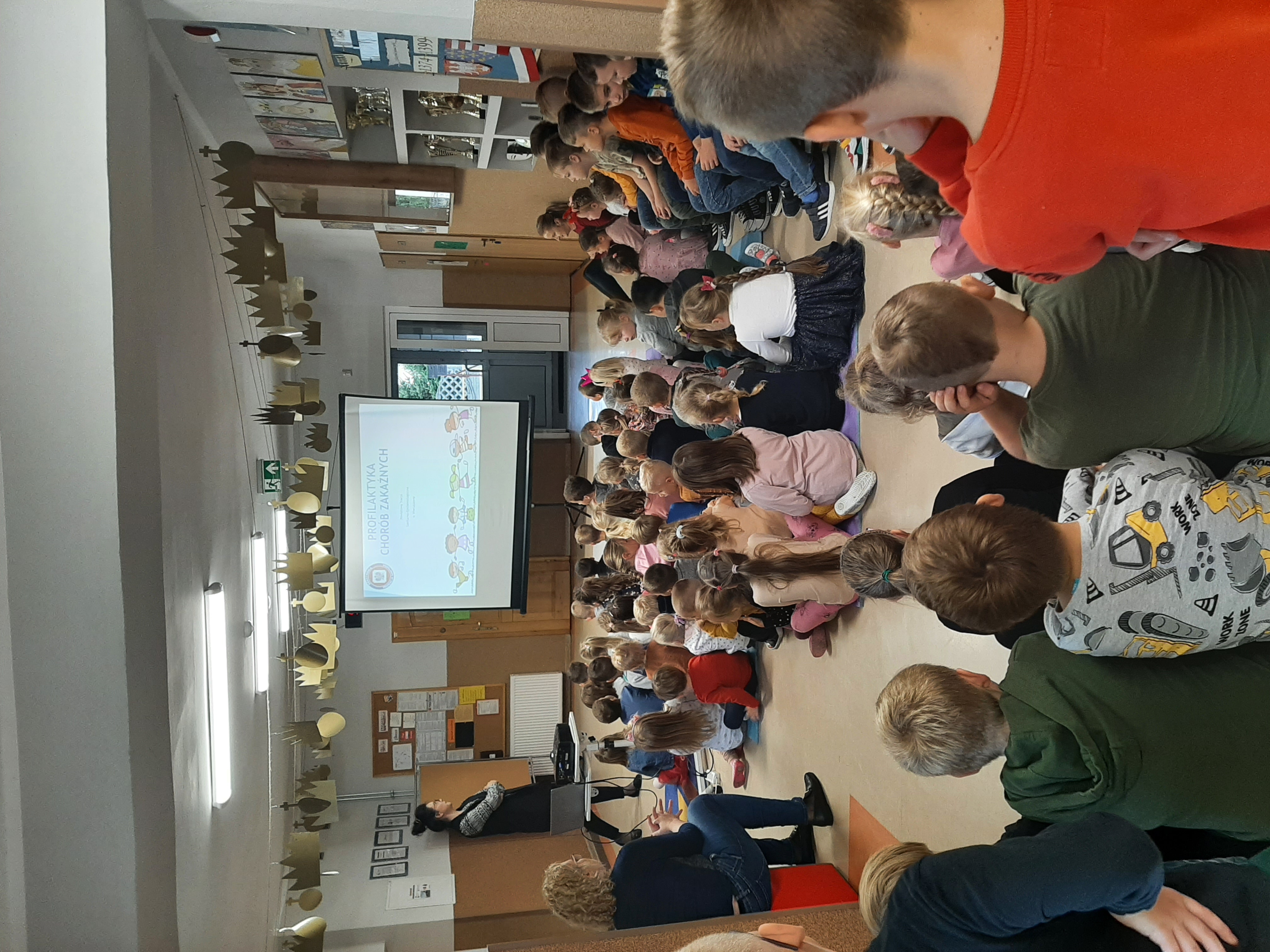 W trakcie spotkania wspólnie z uczniami omówiliśmy sposoby jak chronić się przed chorobami zakaźnym oraz przypomnieliśmy sobie jak prawidłowo dbać o higienę rąk.