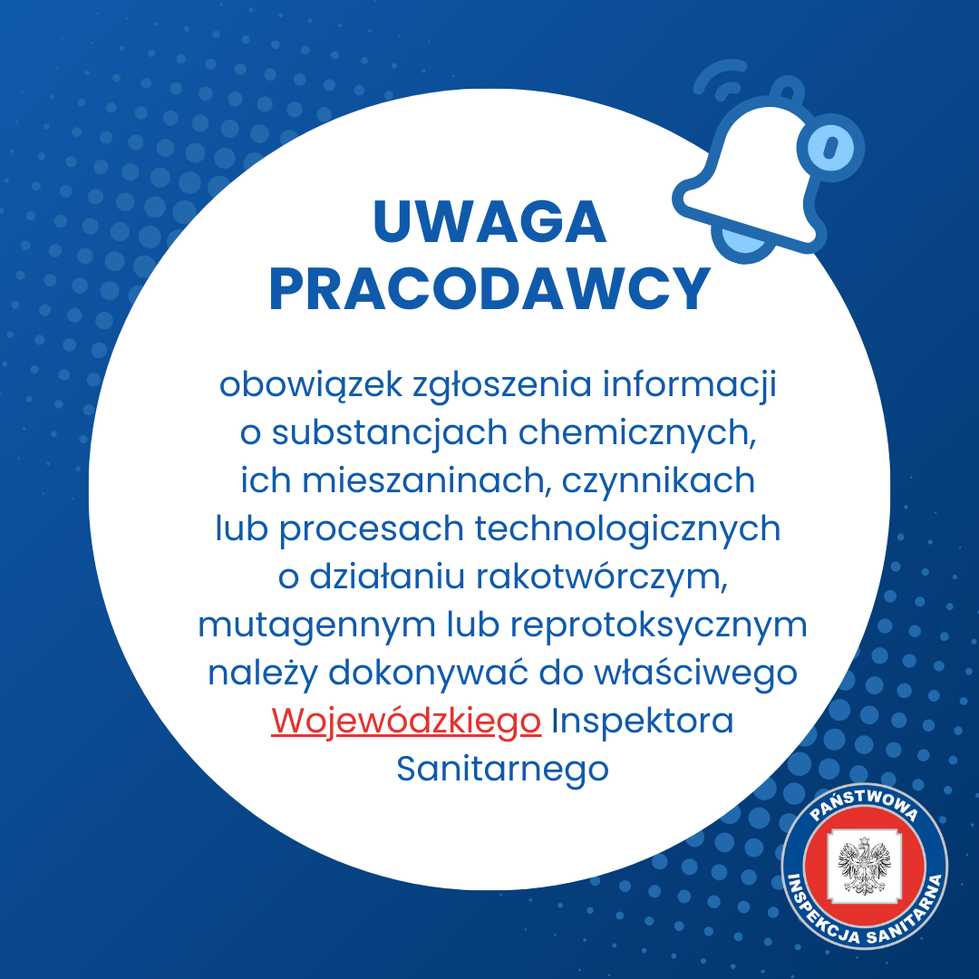 „Pracodawca przekazuje informację o substancjach chemicznych, ich mieszaninach, czynnikach lub procesach technologicznych o działaniu rakotwórczym, mutagennym lub reprotoksycznym właściwemu państwowemu wojewódzkiemu inspektorowi sanitarnemu oraz właściwemu okręgowemu inspektorowi pracy niezwłocznie po rozpoczęciu działalności oraz corocznie, w terminie do dnia 15 stycznia za rok poprzedni, albo na ich wniosek. Informacja uwzględnia dane, o których mowa w ust. 1, i jest sporządzana według wzoru stanowiącego załącznik nr 2 do rozporządzenia.”