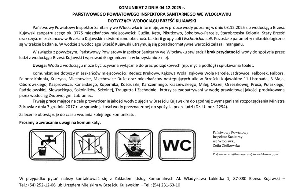 Komunikat Państwowego Powiatowego Inspektora Sanitarnego we Włocławku z dnia 04.12.2025 r