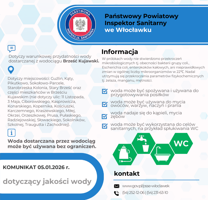 KOMUNIKAT Z DNIA 05.01.2026 r. PAŃSTWOWEGO POWIATOWEGO INSPEKTORA SANITARNEGO WE WŁOCŁAWKU 05.01.2026