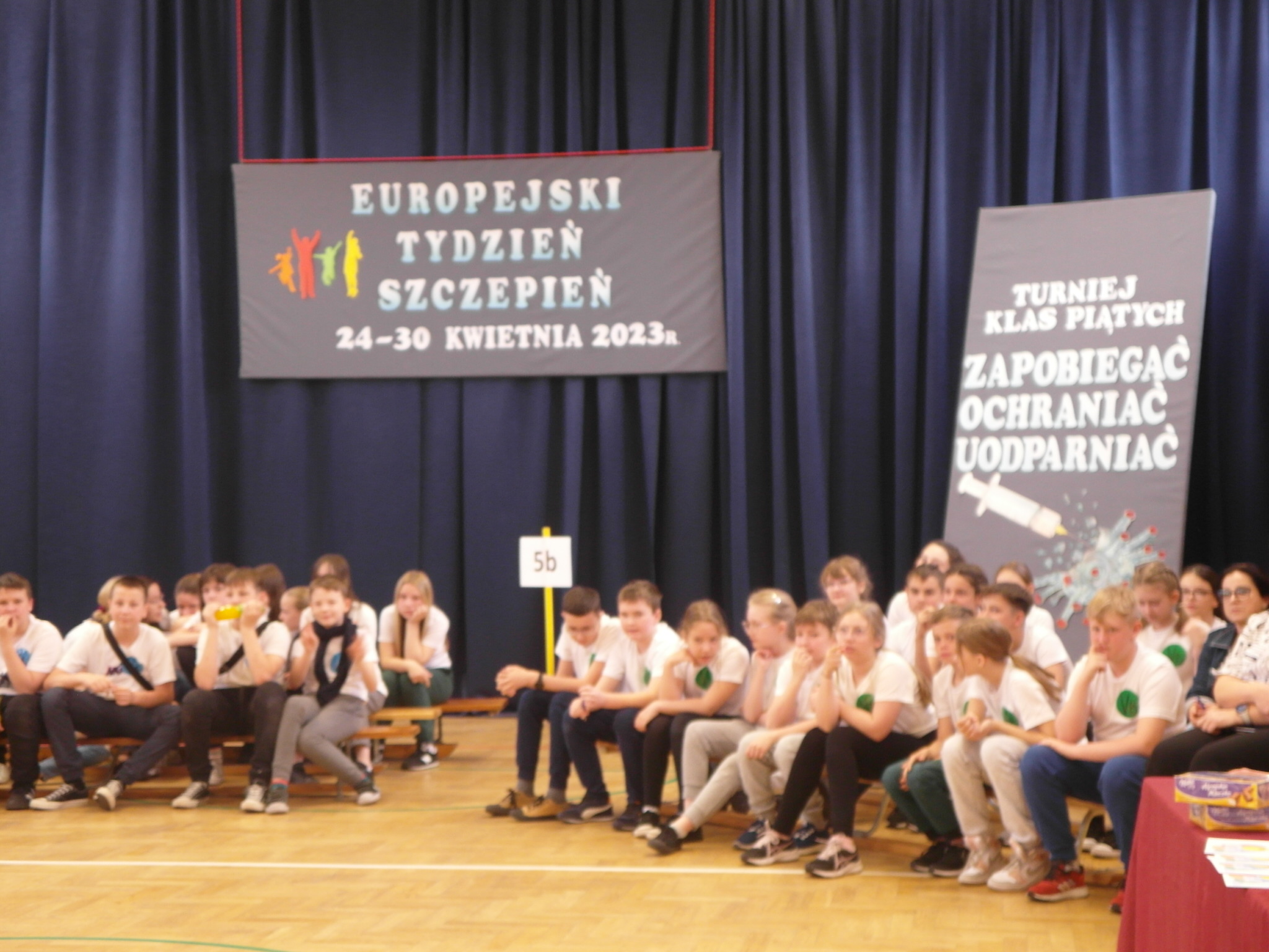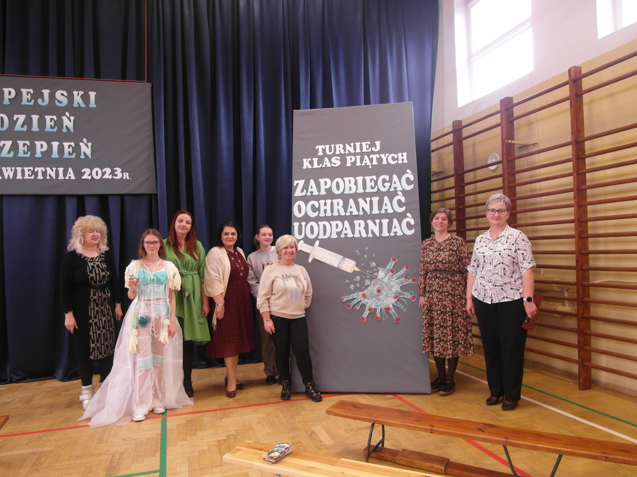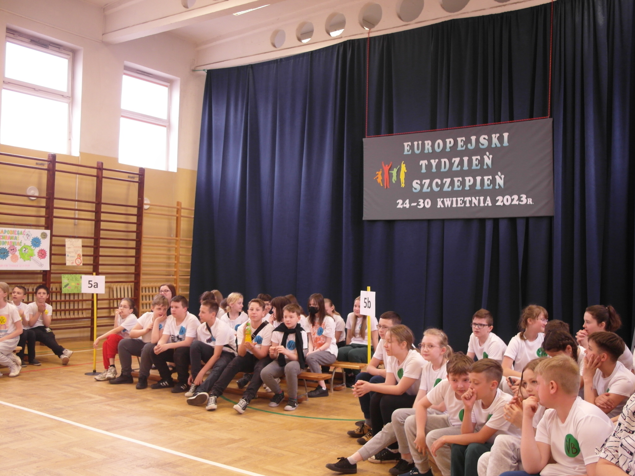 Drugi dzień Europejskiego Tygodnia Szczepień (24-30 kwietnia 2023 r.) spędziłyśmy w Szkole Podstawowej nr 14 we Włocławku. Młodzież klas V zorganizowała turniej klas, gdzie rywalizowano w konkurencjach tematycznych między innymi z zakresu promocji szczepień. Uczestnicy turnieju poprzez zabawę i rywalizację utrwalili wiedzę na temat profilaktyki chorób zakaźnych i innych zagadnień związanych ze zdrowym stylem życia. Serdecznie dziękujemy wszystkim nauczycielom i opiekunom grup, którzy pomogli w organizacji przedsięwzięcia w szkole.