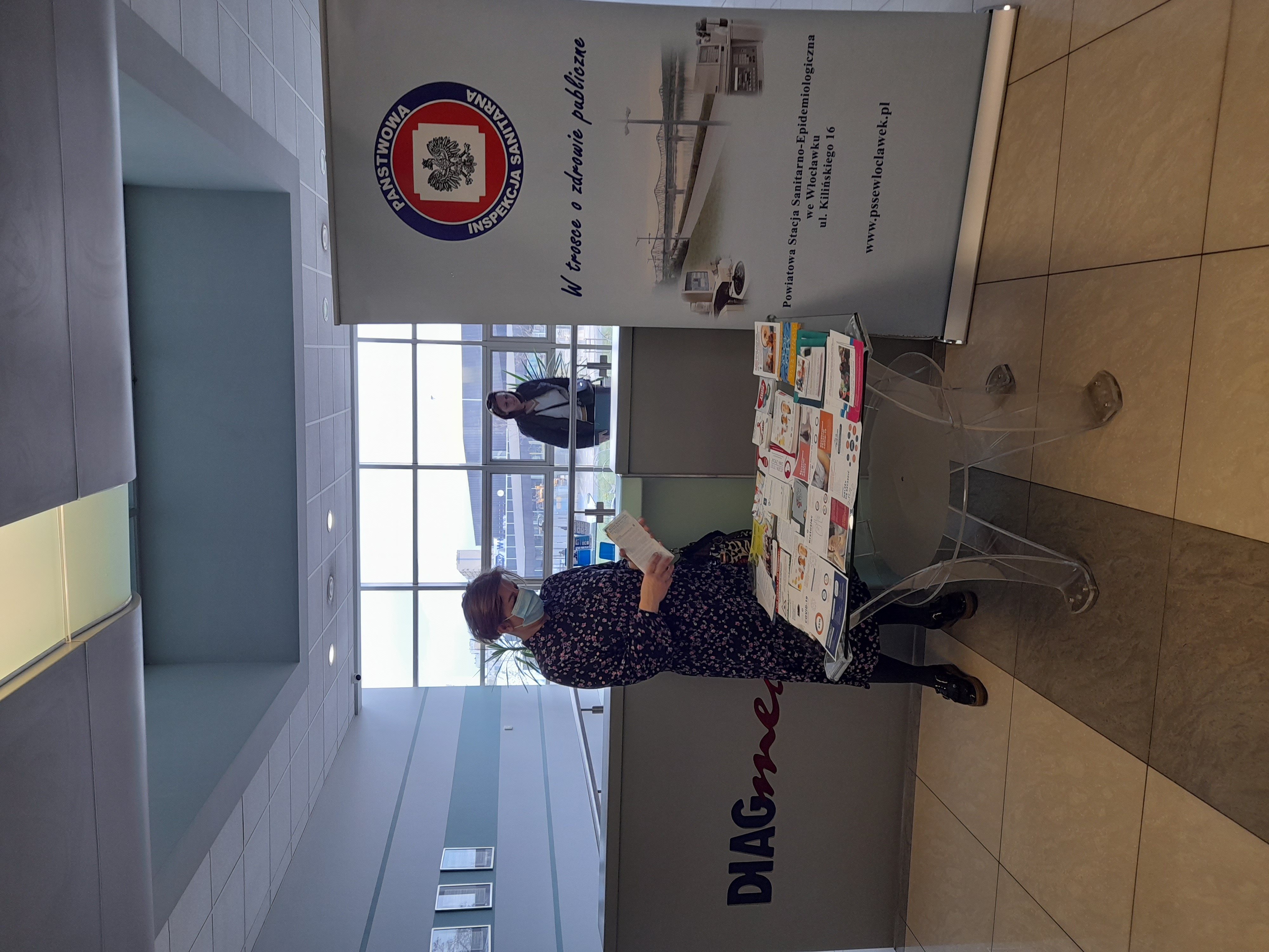 Czwarty dzień Europejskiego Tygodnia Szczepień (24-30 kwietnia 2023 r.) spędziłyśmy w Przychodni Specjalistycznej Diagmed. W holu przychodni pracownicy Powiatowej Stacji Sanitarno-Epidemiologicznej we Włocławku zorganizowali punkt edukacyjny dla pacjentów przychodni. Można było skorzystać z bogatej oferty materiałów edukacyjnych z zakresu profilaktyki chorób zakaźnych oraz szczepień ochronnych obowiązkowych i zalecanych. Podczas rozmów z pacjentami podkreślano rolę szczepień – powszechnych i indywidualnych. Zwracano szczególną uwagę na szczepienia pacjentów z grup wysokiego ryzyka i uświadamiano, że szczepienia eliminują groźne choroby z naszego otoczenia.