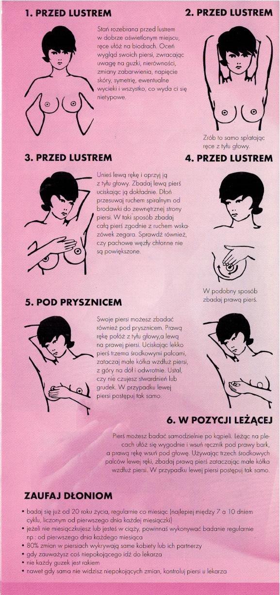 Dlatego tak bardzo ważna jest edukacja kobiet w zakresie regularnego, samodzielnego badania piersi. Informacja o wykryciu jakichkolwiek zmian w obrębie piersi zawsze powinna skutkować rozpoczęciem diagnostyki w kierunku potwierdzenia zmian nowotworowych.