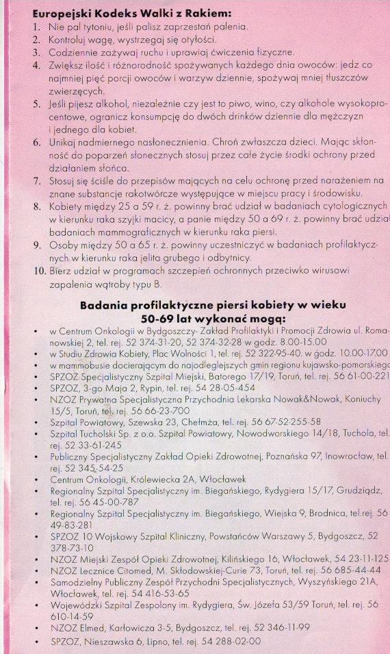Rak piersi to najczęstsza choroba nowotworowa wśród kobiet. Głównym powodem, dla którego tak wiele kobiet nadal umiera na raka, jest zbyt późne wykrycie choroby, wtedy gdy jest ona już w zaawansowanym stadium. Postęp medycyny, umiejętności polskich lekarzy i nakłady ministra zdrowia na specjalistyczną aparaturę stosowaną w diagnostyce i leczeniu onkologicznym sprawiają, że w zdecydowanej większości przypadków wczesne wykrycie raka piersi umożliwia całkowite wyleczenie. Dlatego warto regularnie wykonywać badania diagnostyczne (mammografię, USG i samobadanie piersi)!