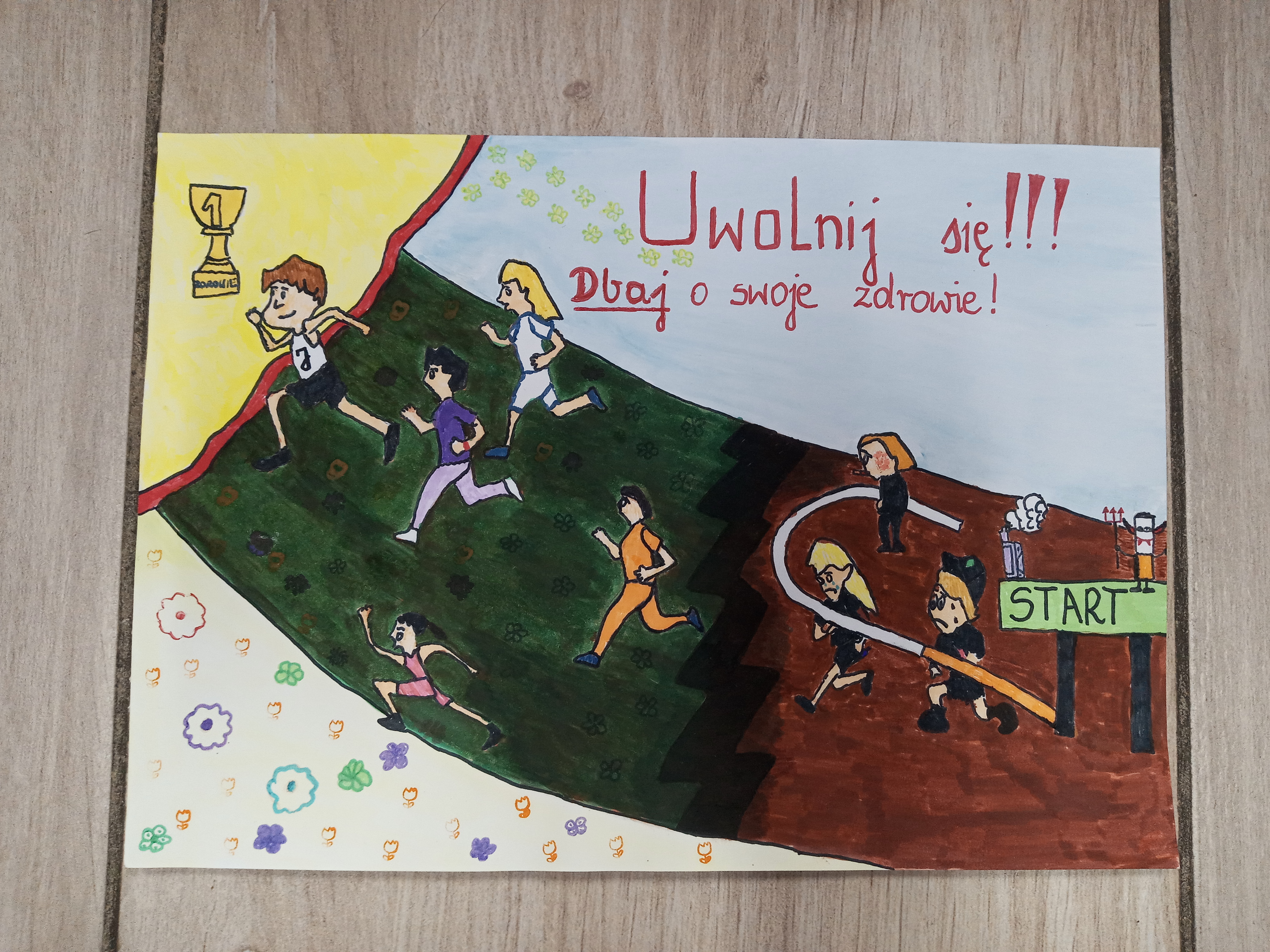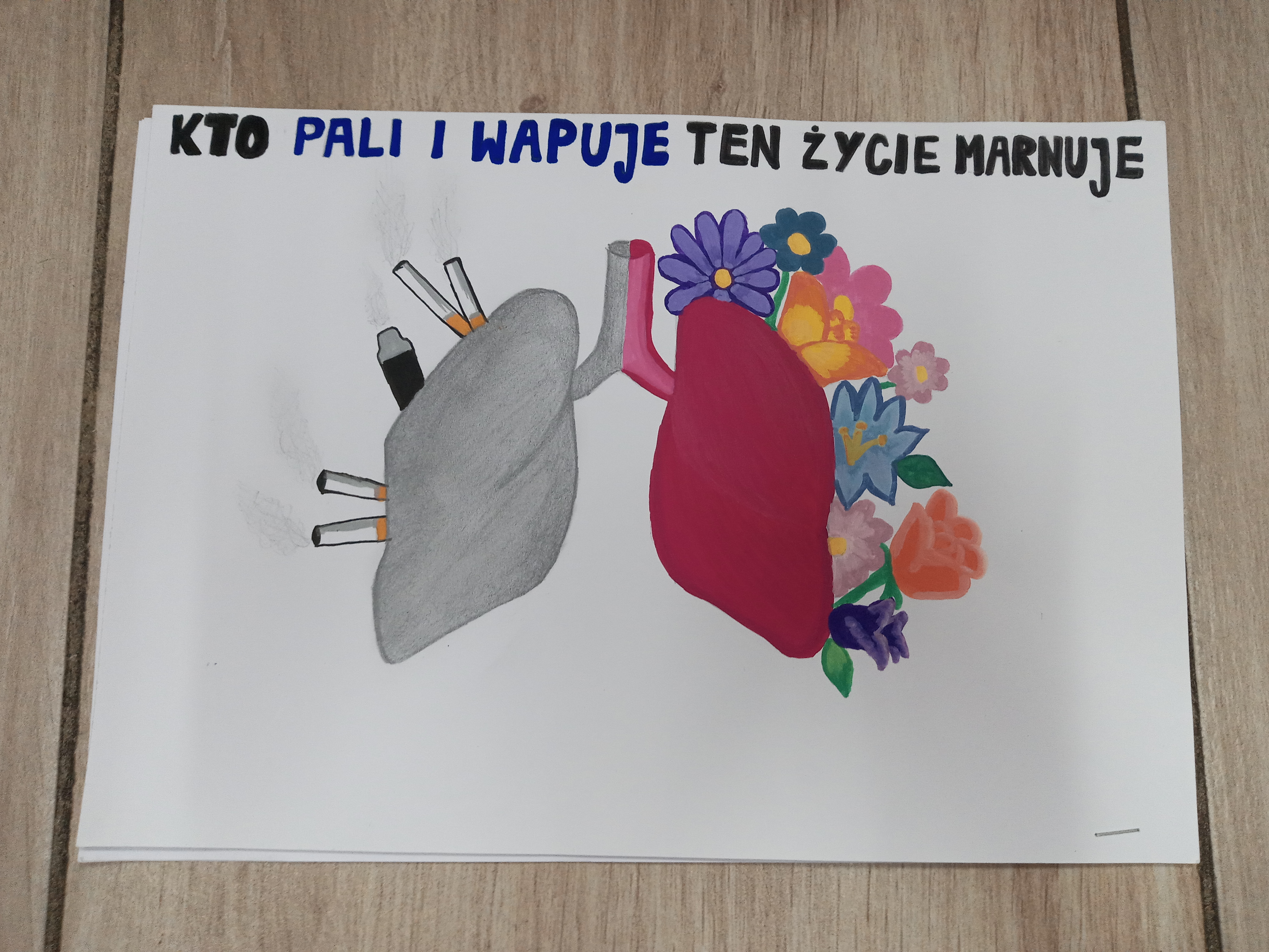 Podsumowanie konkursu plastycznego na plakat pod hasłem „KTO PALI I WAPUJE TEN ZDROWIE MARNUJE”