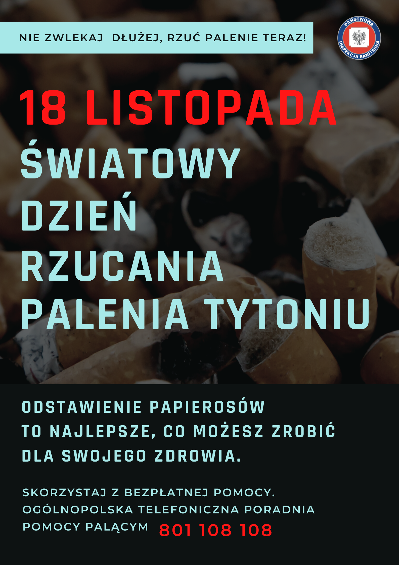 Światowy Dzień Rzucania Palenia Tytoniu przypada corocznie w trzeci czwartek listopada. W roku 2021 jest to 18 listopada.