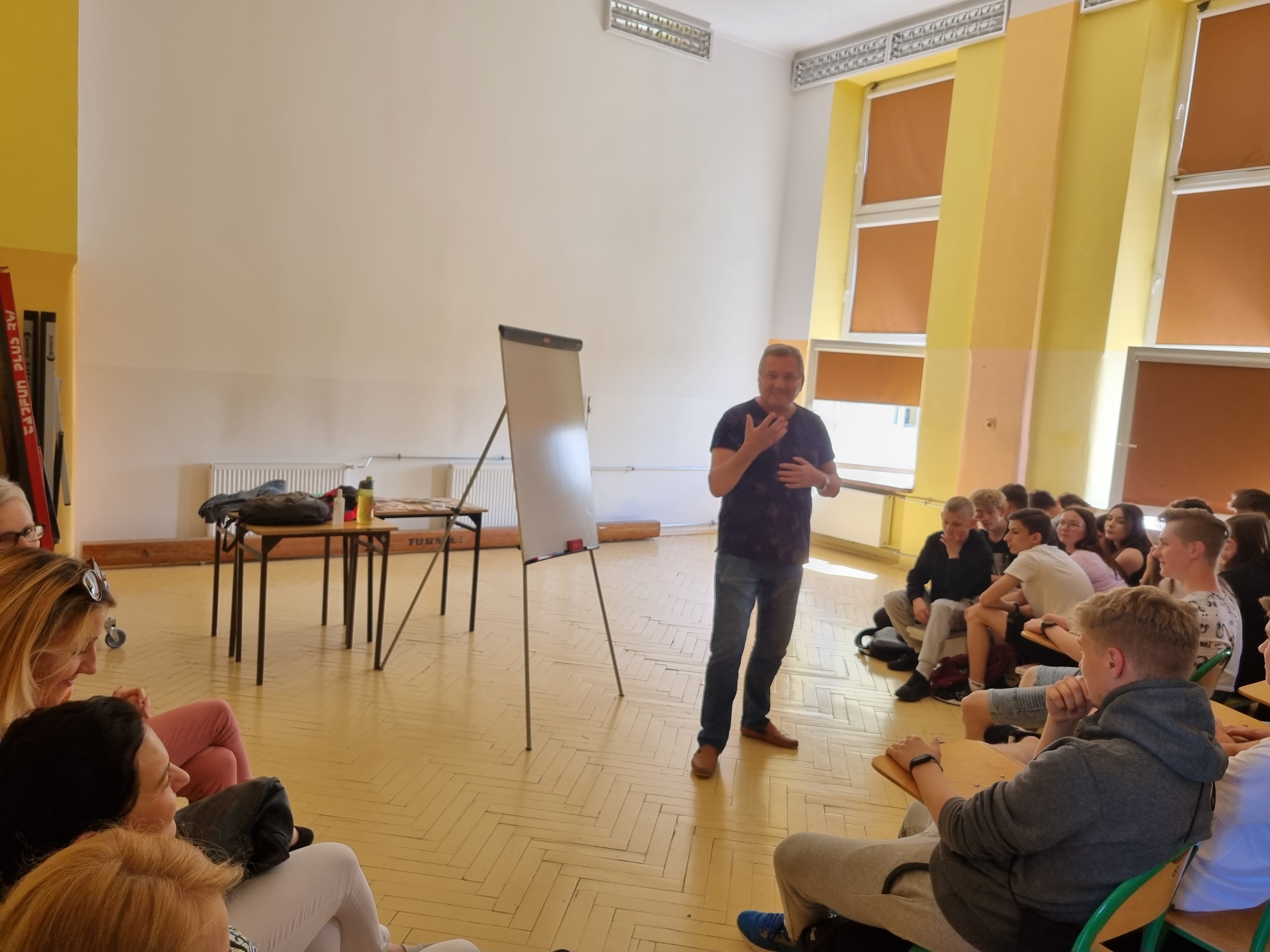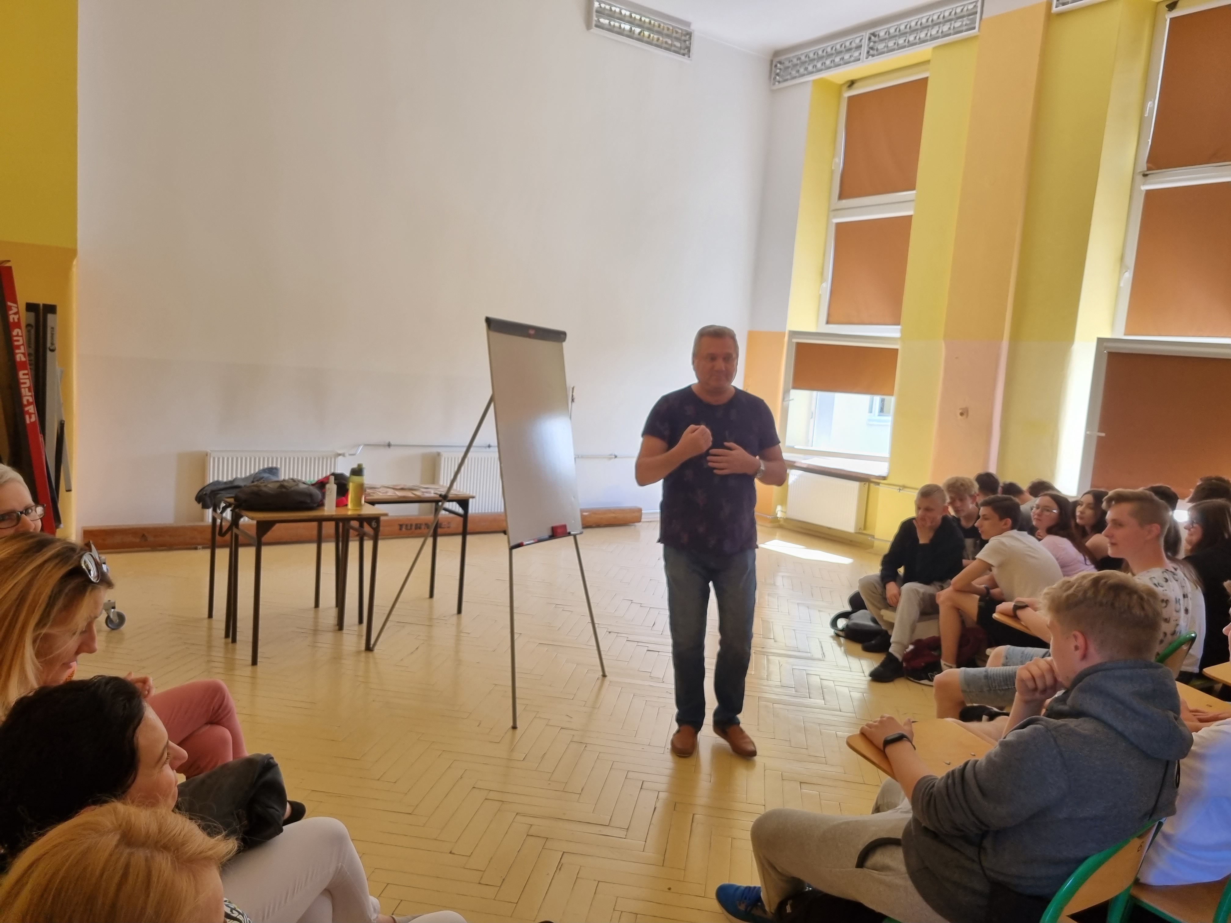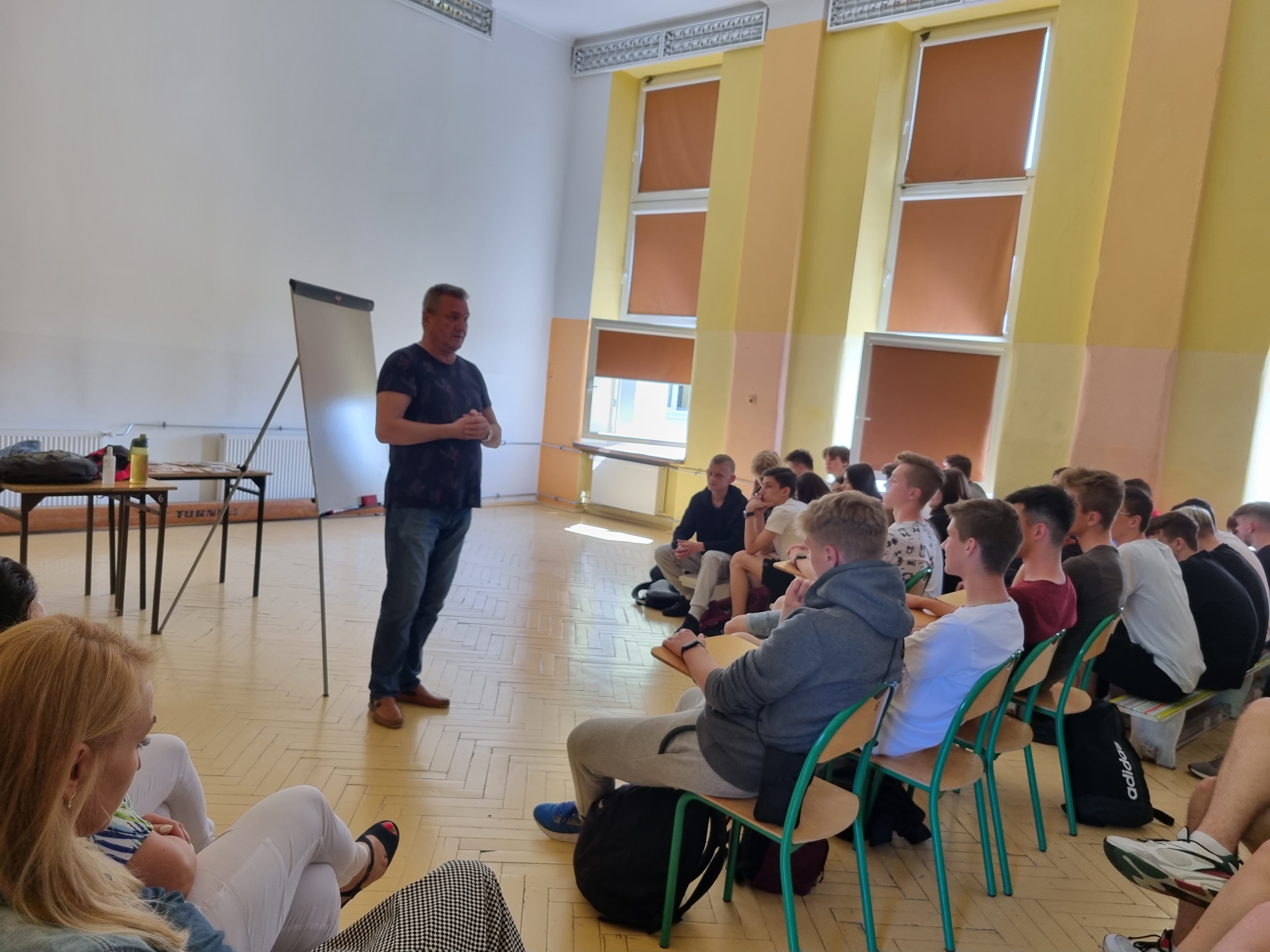 Pan Roman Latoszyński przeprowadził zajęcia dla uczniów w klasach : I ti, I ps/mat,I toś/te/tg, I tr/tż, 3sm/ppr, Ij, I sm/pr, II ti, 2 tor/te, 3 bio/chem oraz 2 hpp. W spotkaniu uczestniczyło 230 uczniów oraz nauczyciele i wychowawcy klas.