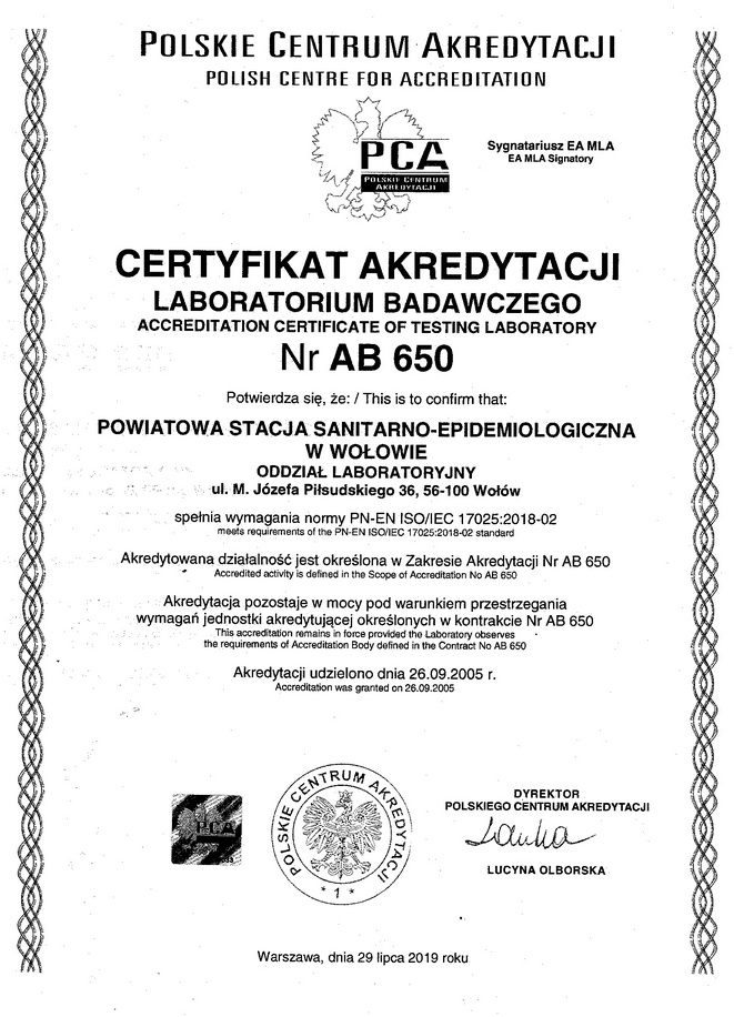 Certyfikat LaboratoriumCertyfikat.jpg 0.19MB Zakres akredytacji AB 650