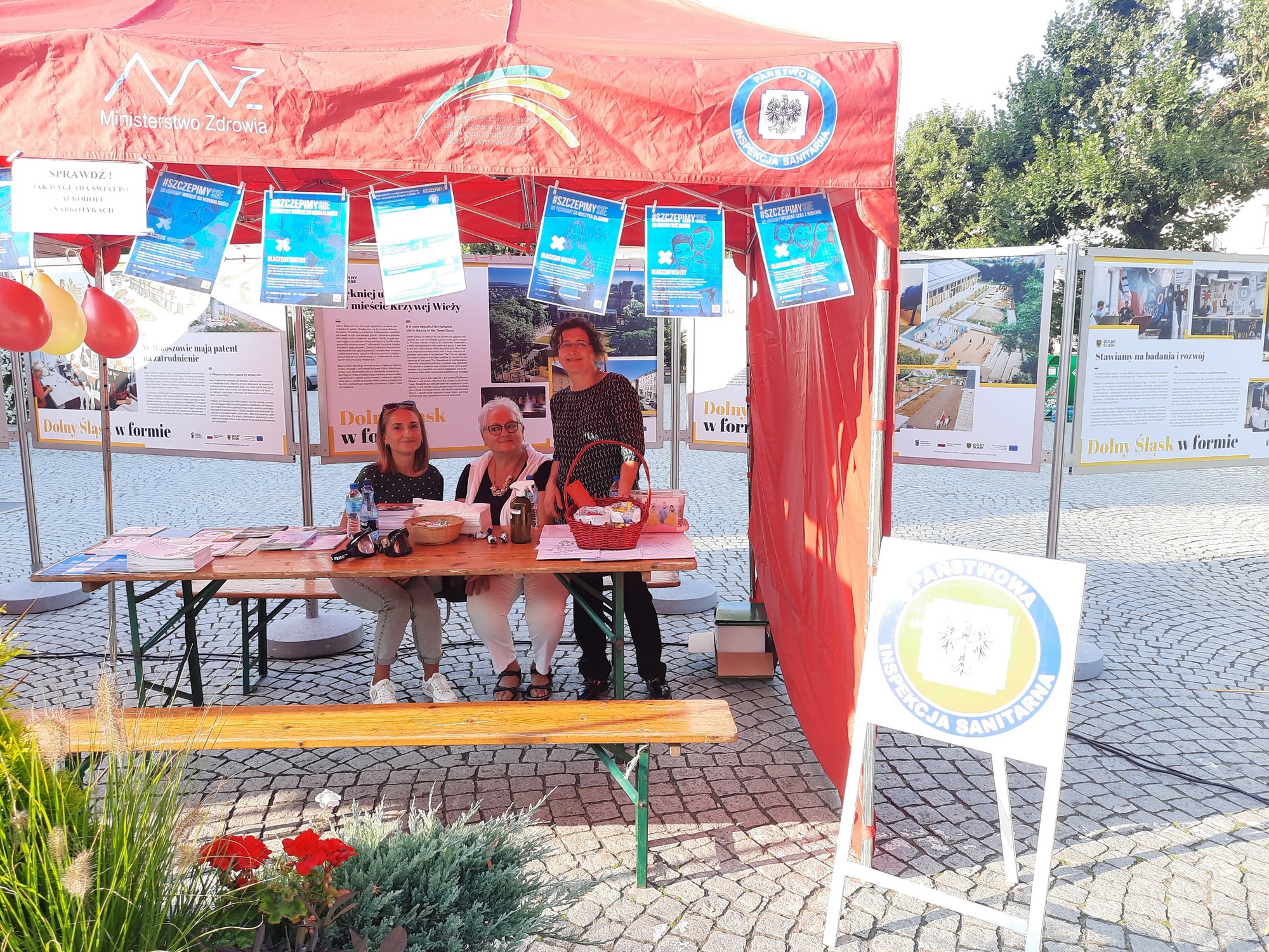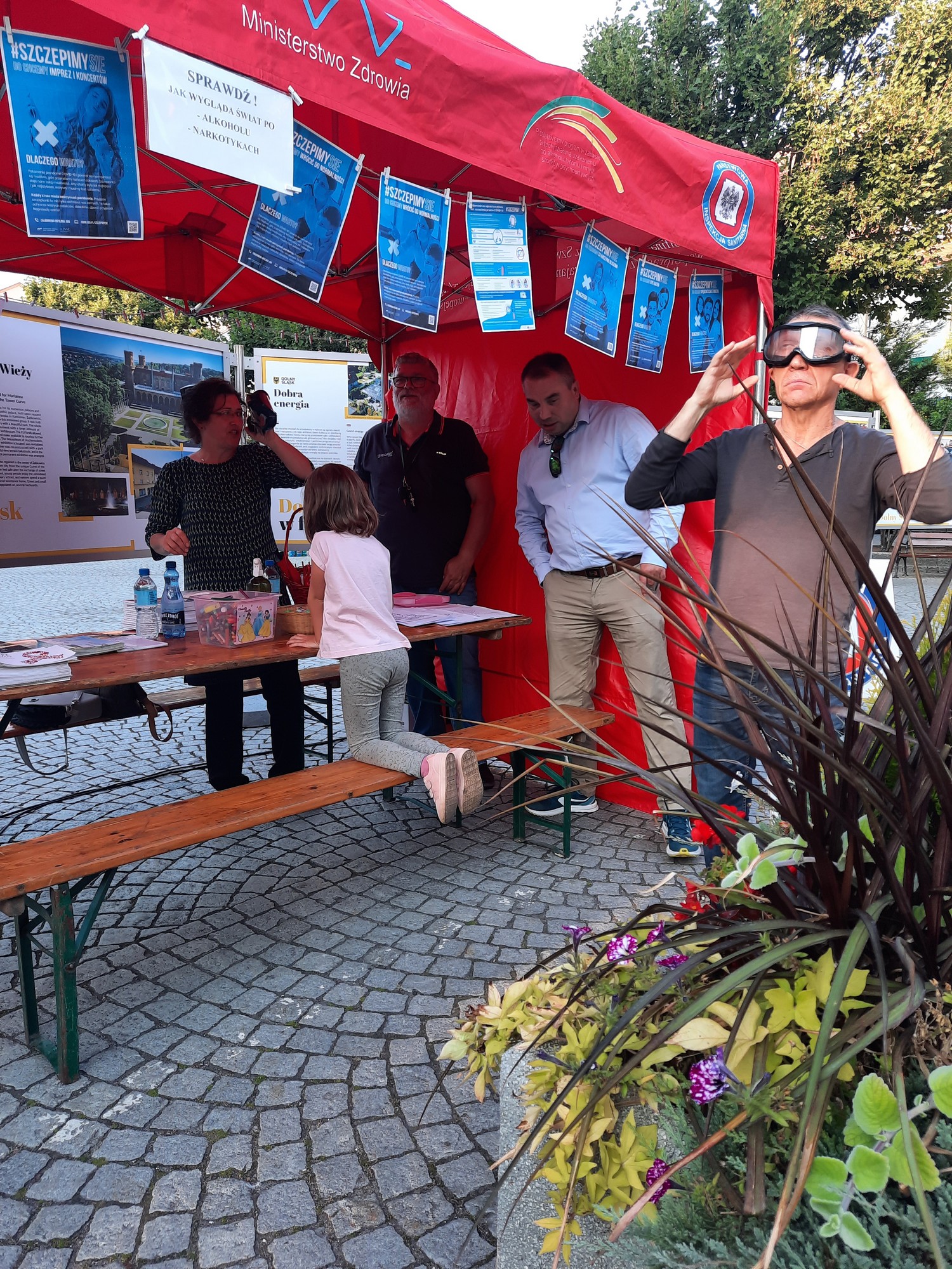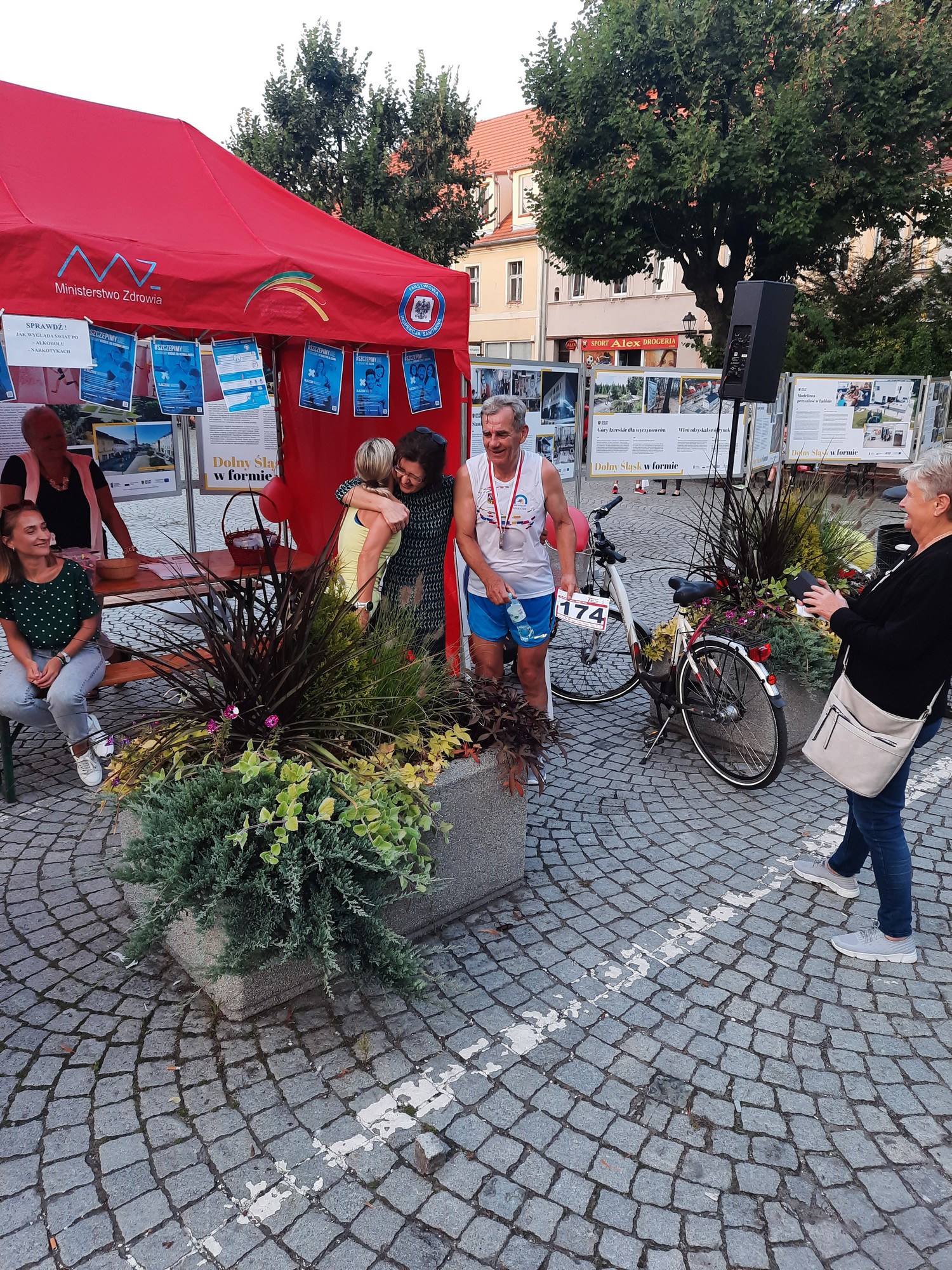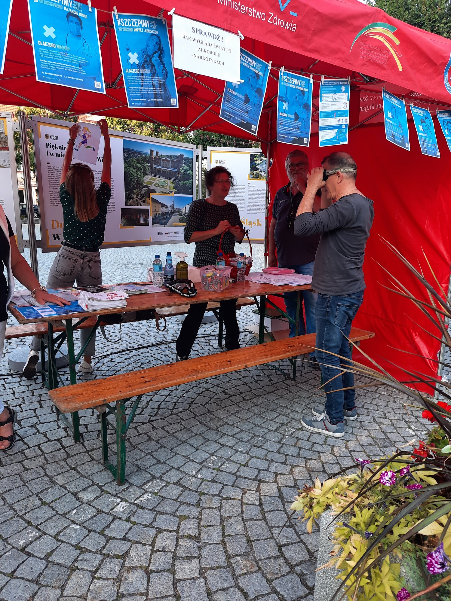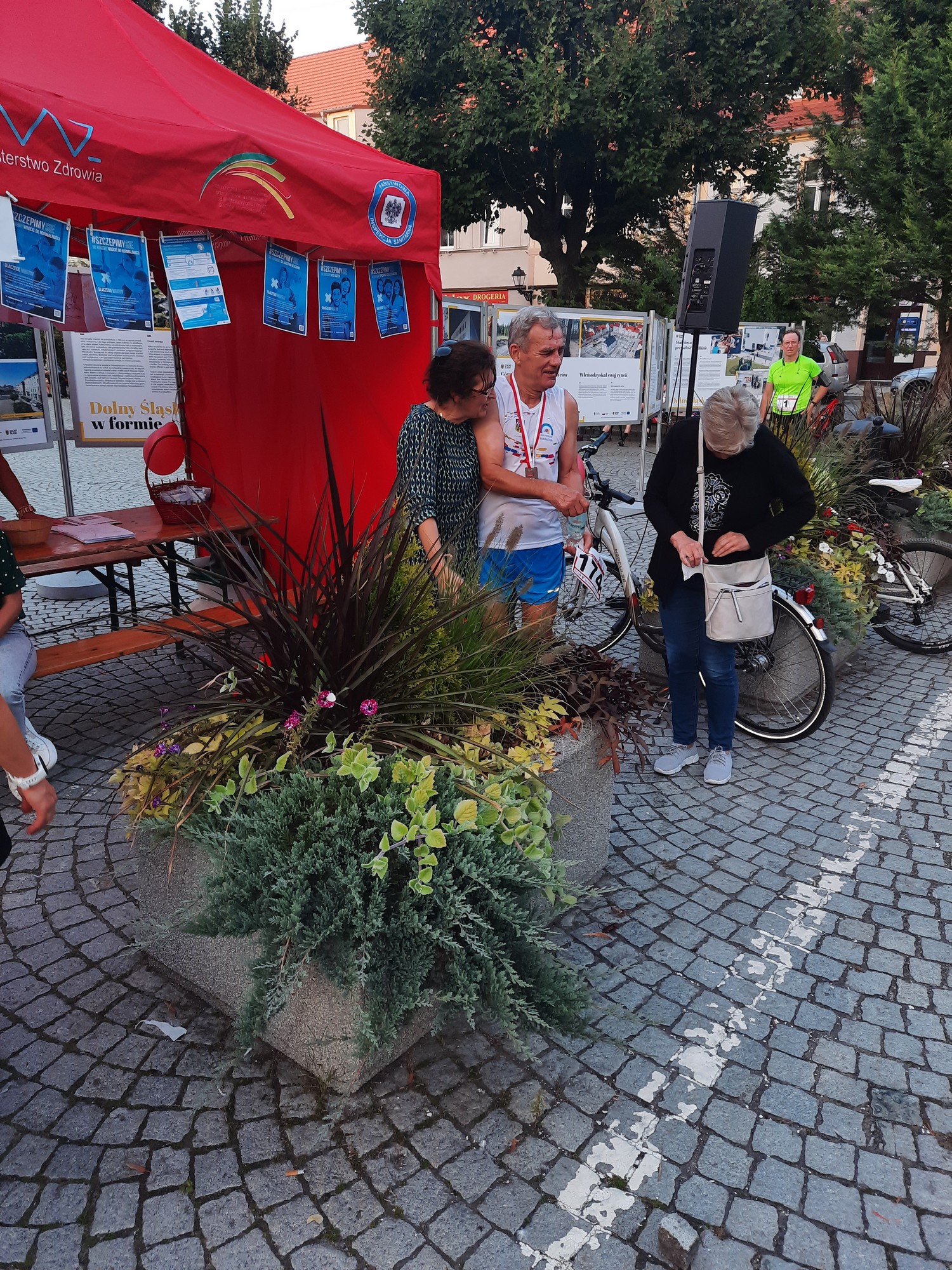 W dniu 4 września bieżącego roku na wołowskim rynku, przeprowadzony został już po raz siódmy- Bieg Flagi. Wśród przepięknej, zabytkowej scenerii Naszego Rynku oraz przy pięknej pogodzie, Powiatowa Stacja Sanitarno-Epidemiologiczna w Wołowie zorganizowała punkt Informacyjno – Edukacyjny. W ramach działań punktu, pracownicy naszej Inspekcji Sanitarnej zorganizowali konkurs plastyczny dla najmłodszych o tematyce prozdrowotnej, którego każdy z uczestników został nagrodzony upominkami. Dla starszych gości stoiska, przekazano szereg informacji na temat zachowań zagrażających Naszemu zdrowiu. między innymi tzw. dopalaczy, negatywnych skutków palenia tytoniu czy spożywania alkoholu. W sposób szczególny największą uwagę zwrócono na konieczność wykonywania szczepień przeciw COVID-19, w ramach kampanii społecznej „Szczepimy Się”. Pracownicy obsługujący punkt informacyjny w sposób bardzo skrupulatny, poparty wiedzą merytoryczną, przedstawili korzyści dla Naszego zdrowia, wynikające z zaszczepienia. W czasie funkcjonowania punktu udzielono również fachowych porad na temat zdrowego odżywiania, ze szczególnym zwróceniem uwagi na trwający sezon grzybobrania, a także uczulano mieszkańców na zagrożenia chorobami odkleszczowymi. Stoisko Inspekcji Sanitarnej cieszyło się ogromnym zainteresowaniem. Nasi goście bardzo chętnie korzystali z przymierzenia tzw. alko i narkogogli, poznając tym samym niepożądane doznania towarzyszące stosowaniu tych uzależniających używek. Podczas blisko sześciogodzinnego funkcjonowania Naszego punktu rozdano kilkaset ulotek poruszających tematykę zdrowia Naszych mieszkańców.