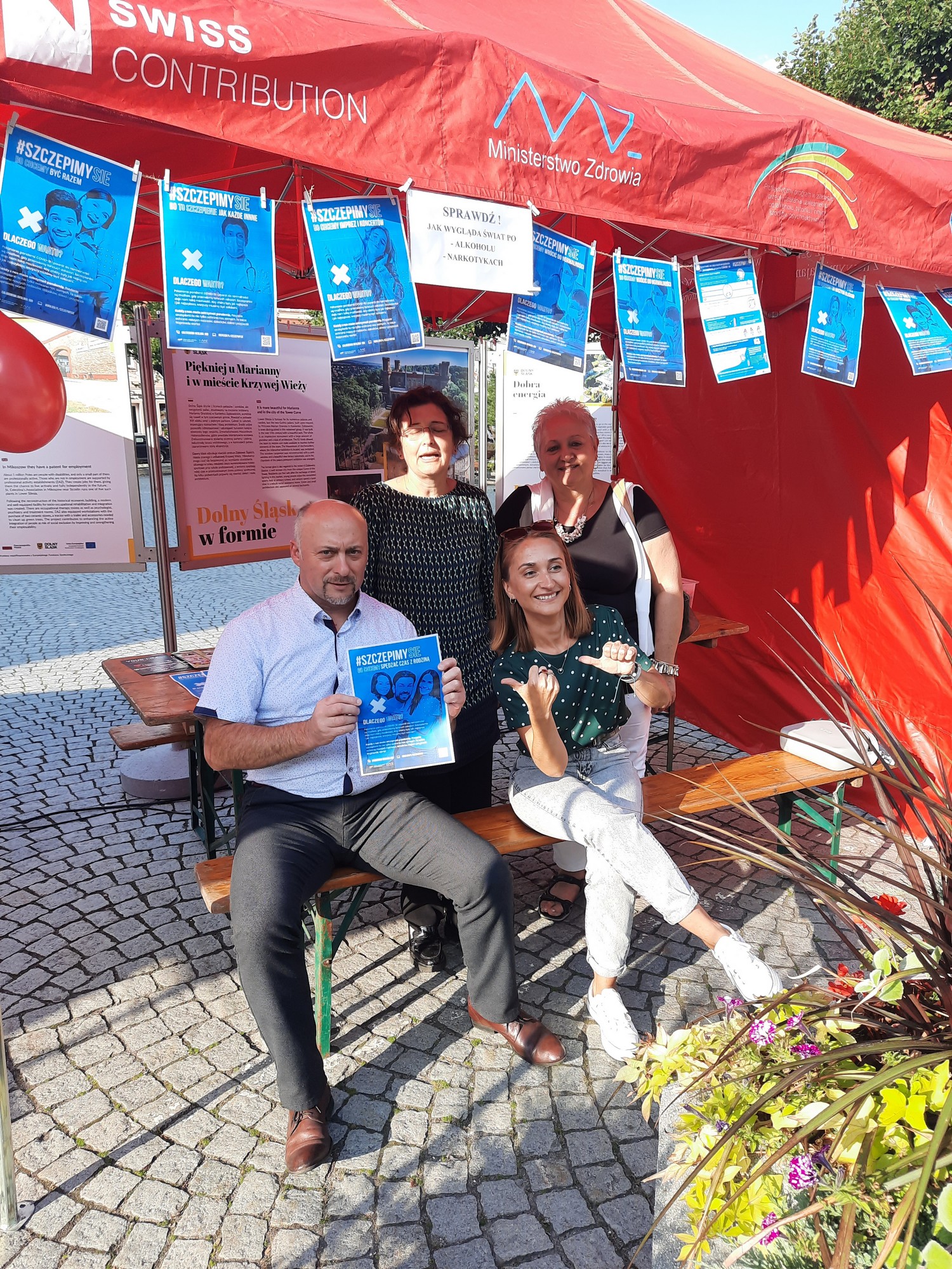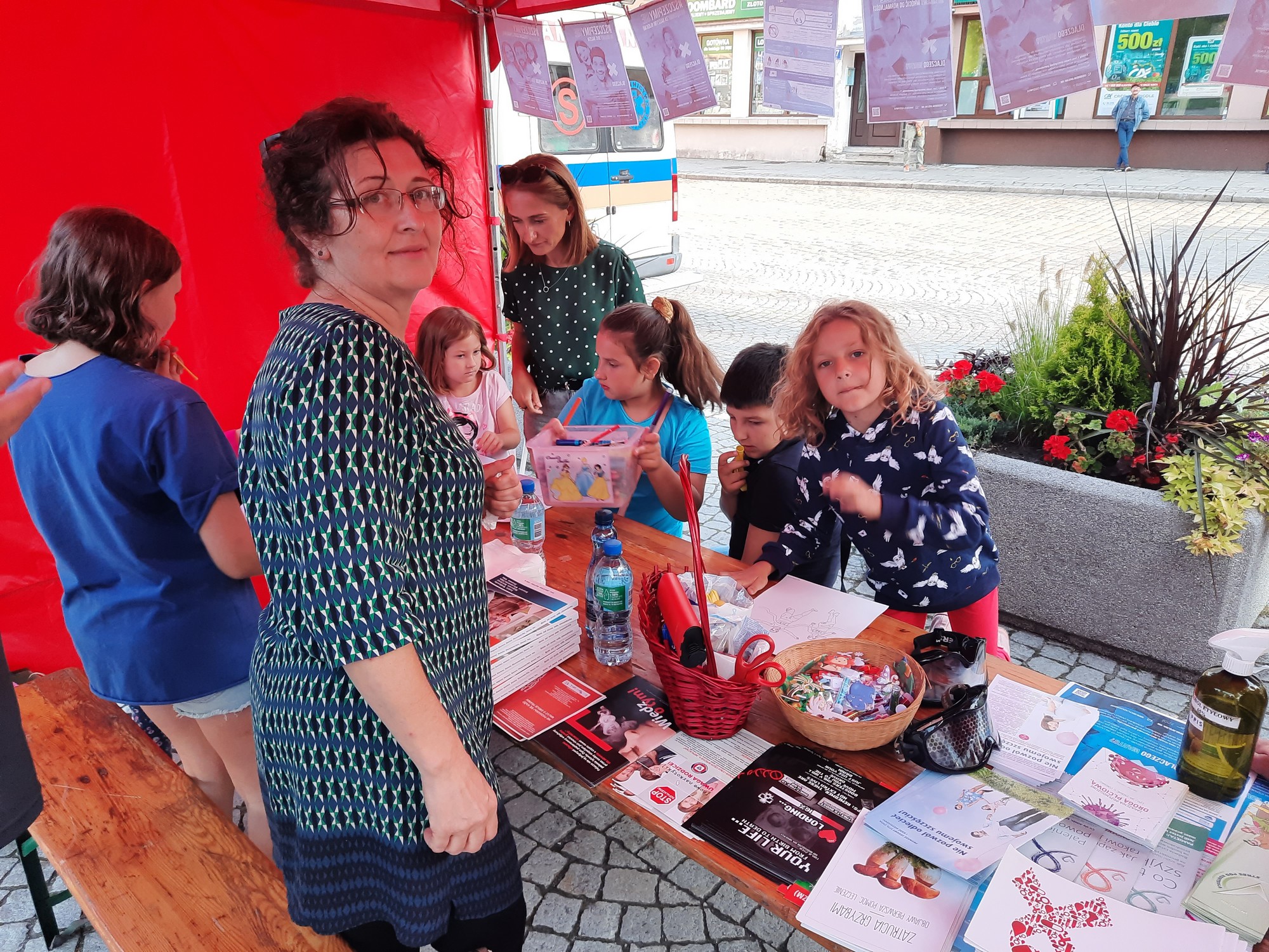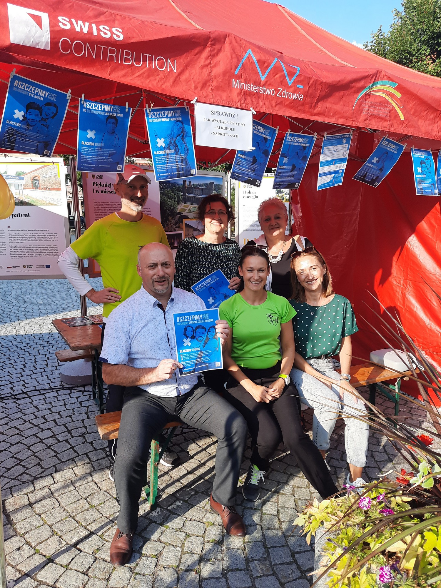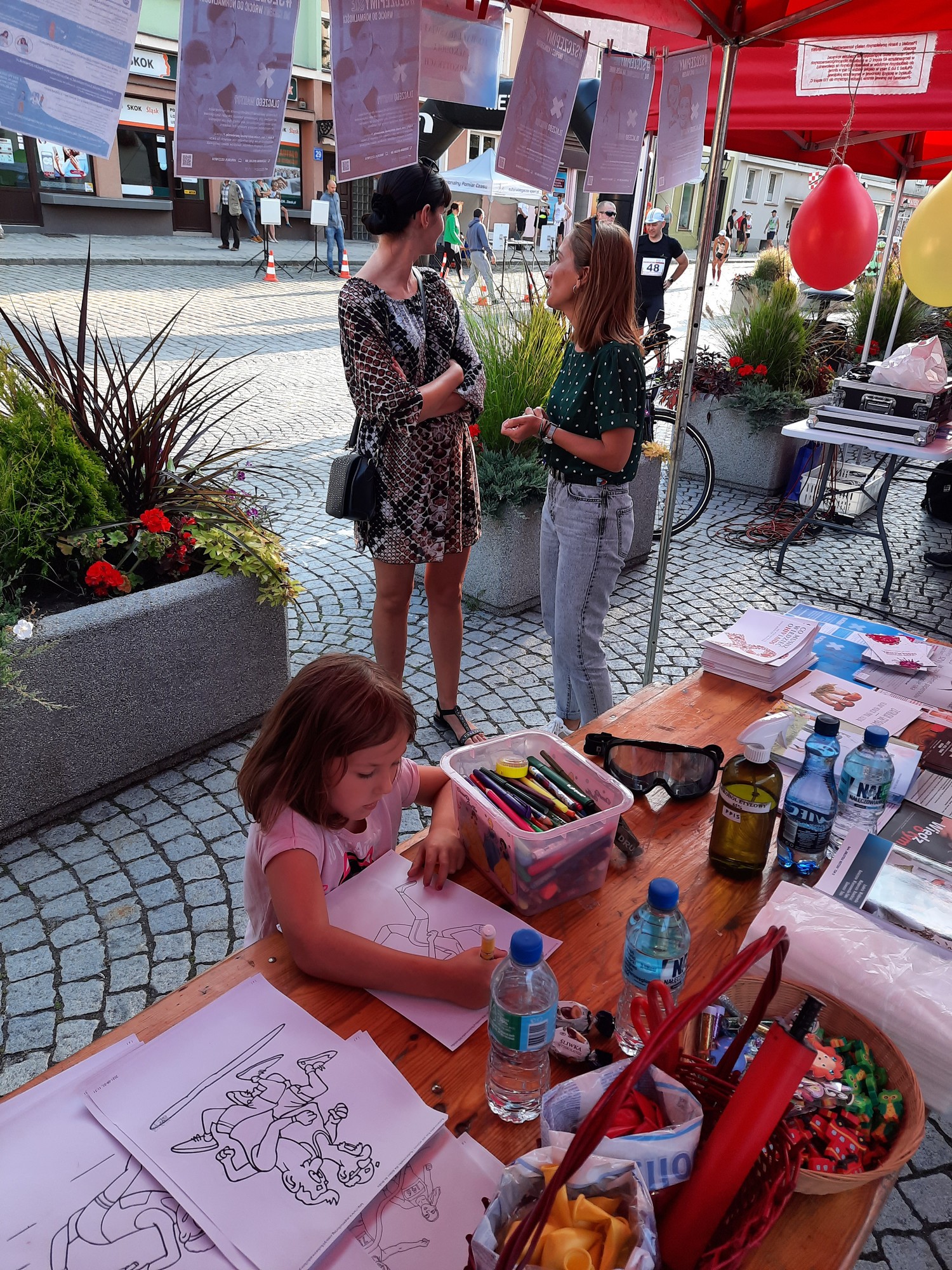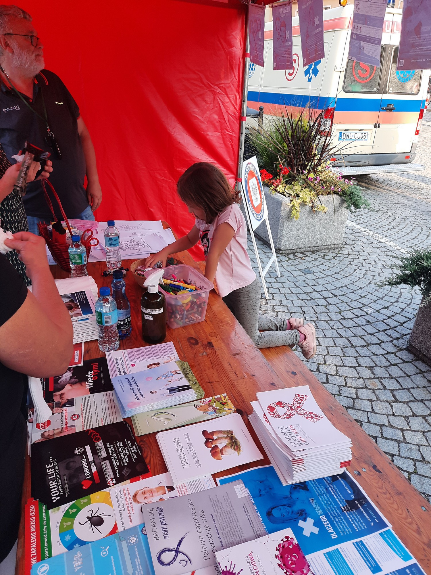 W dniu 4 września bieżącego roku na wołowskim rynku, przeprowadzony został już po raz siódmy- Bieg Flagi. Wśród przepięknej, zabytkowej scenerii Naszego Rynku oraz przy pięknej pogodzie, Powiatowa Stacja Sanitarno-Epidemiologiczna w Wołowie zorganizowała punkt Informacyjno – Edukacyjny. W ramach działań punktu, pracownicy naszej Inspekcji Sanitarnej zorganizowali konkurs plastyczny dla najmłodszych o tematyce prozdrowotnej, którego każdy z uczestników został nagrodzony upominkami. Dla starszych gości stoiska, przekazano szereg informacji na temat zachowań zagrażających Naszemu zdrowiu. między innymi tzw. dopalaczy, negatywnych skutków palenia tytoniu czy spożywania alkoholu. W sposób szczególny największą uwagę zwrócono na konieczność wykonywania szczepień przeciw COVID-19, w ramach kampanii społecznej „Szczepimy Się”. Pracownicy obsługujący punkt informacyjny w sposób bardzo skrupulatny, poparty wiedzą merytoryczną, przedstawili korzyści dla Naszego zdrowia, wynikające z zaszczepienia. W czasie funkcjonowania punktu udzielono również fachowych porad na temat zdrowego odżywiania, ze szczególnym zwróceniem uwagi na trwający sezon grzybobrania, a także uczulano mieszkańców na zagrożenia chorobami odkleszczowymi. Stoisko Inspekcji Sanitarnej cieszyło się ogromnym zainteresowaniem. Nasi goście bardzo chętnie korzystali z przymierzenia tzw. alko i narkogogli, poznając tym samym niepożądane doznania towarzyszące stosowaniu tych uzależniających używek. Podczas blisko sześciogodzinnego funkcjonowania Naszego punktu rozdano kilkaset ulotek poruszających tematykę zdrowia Naszych mieszkańców.