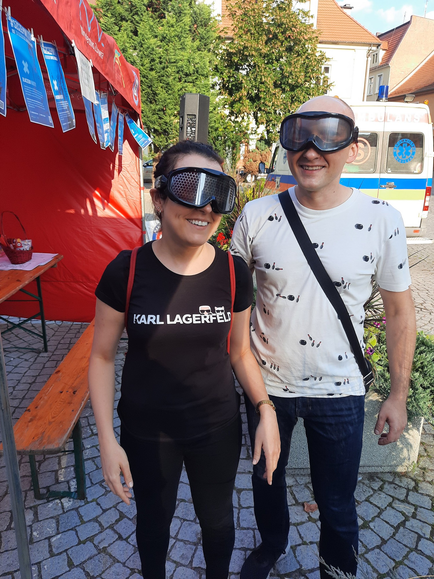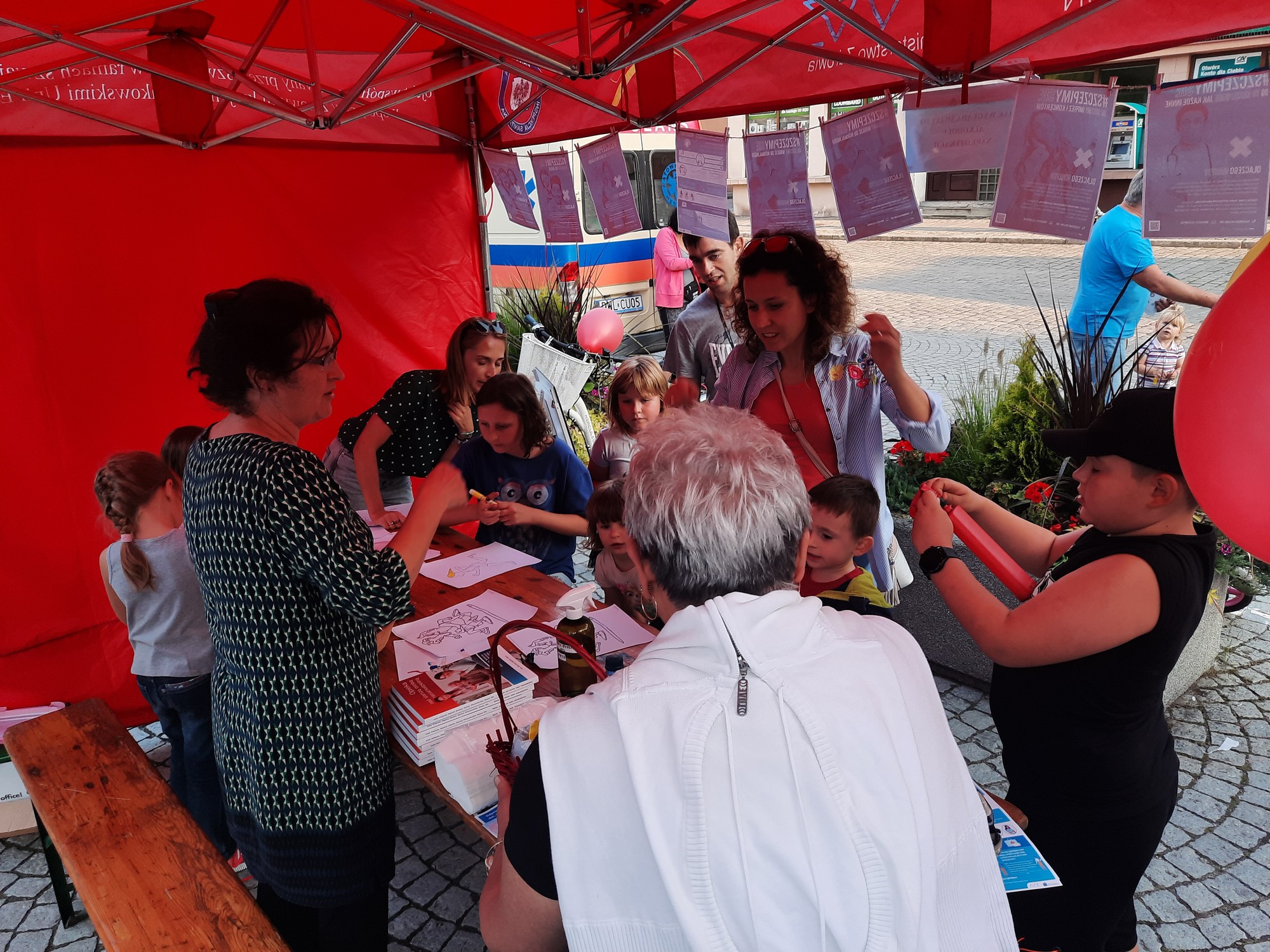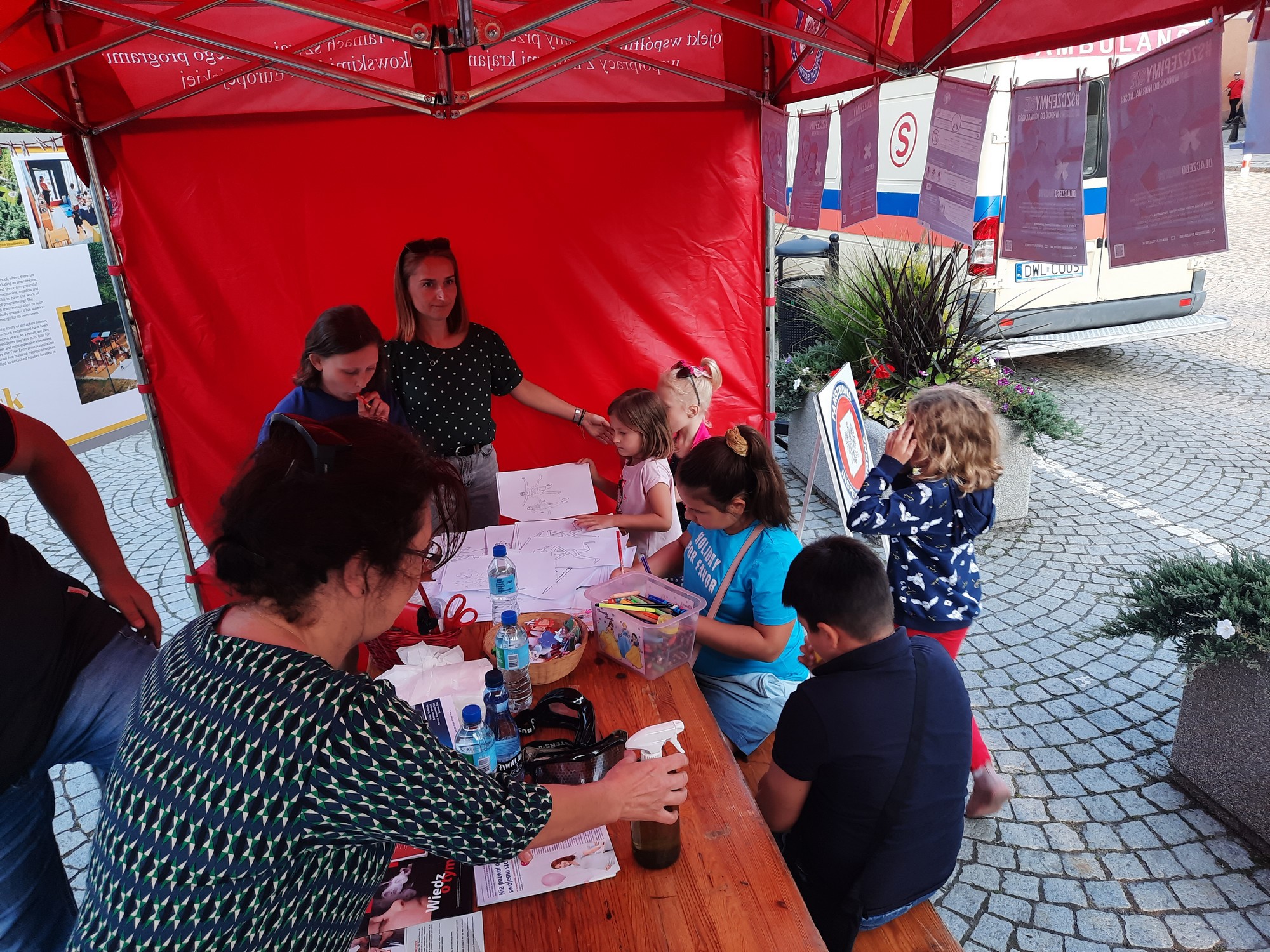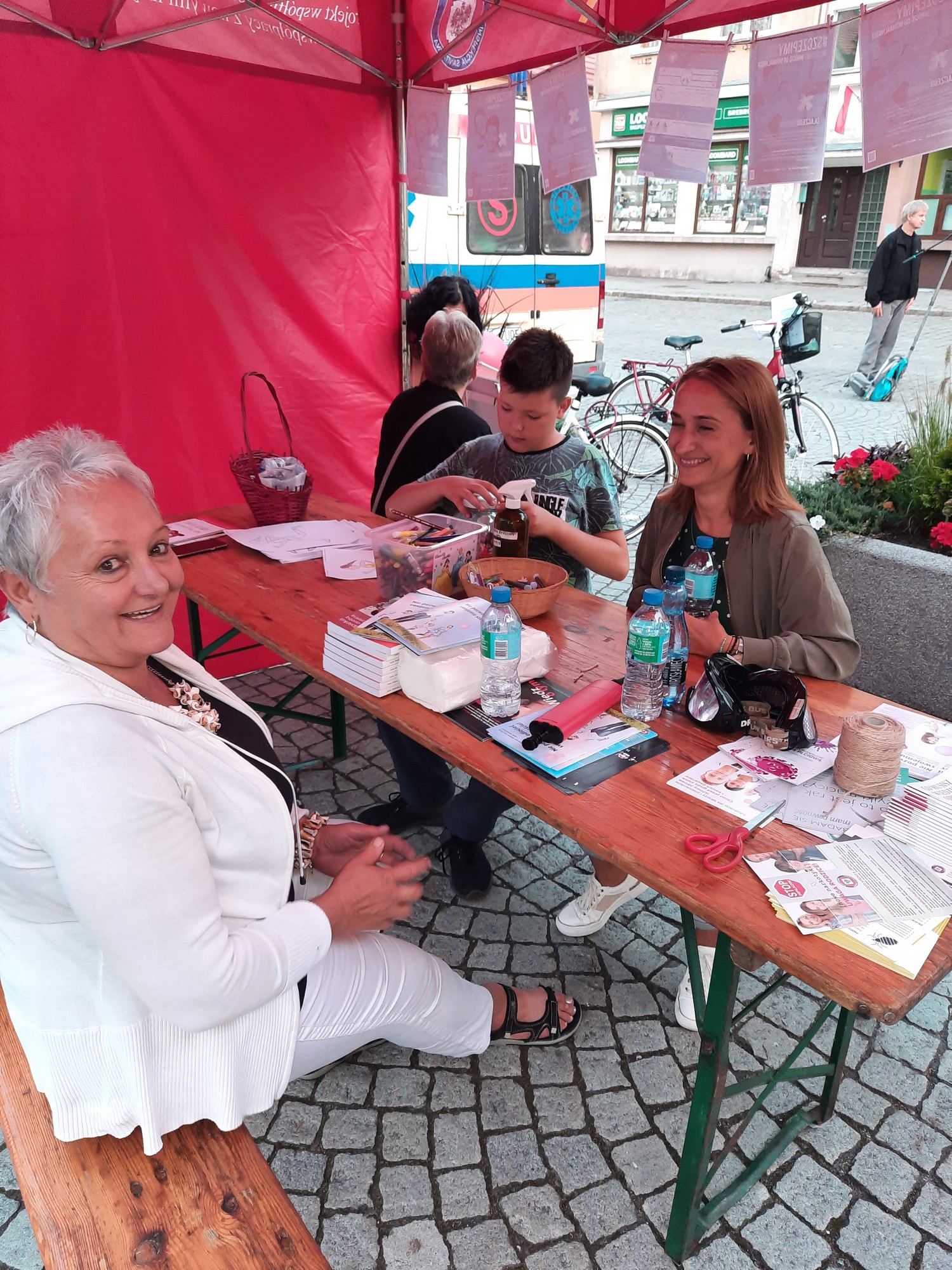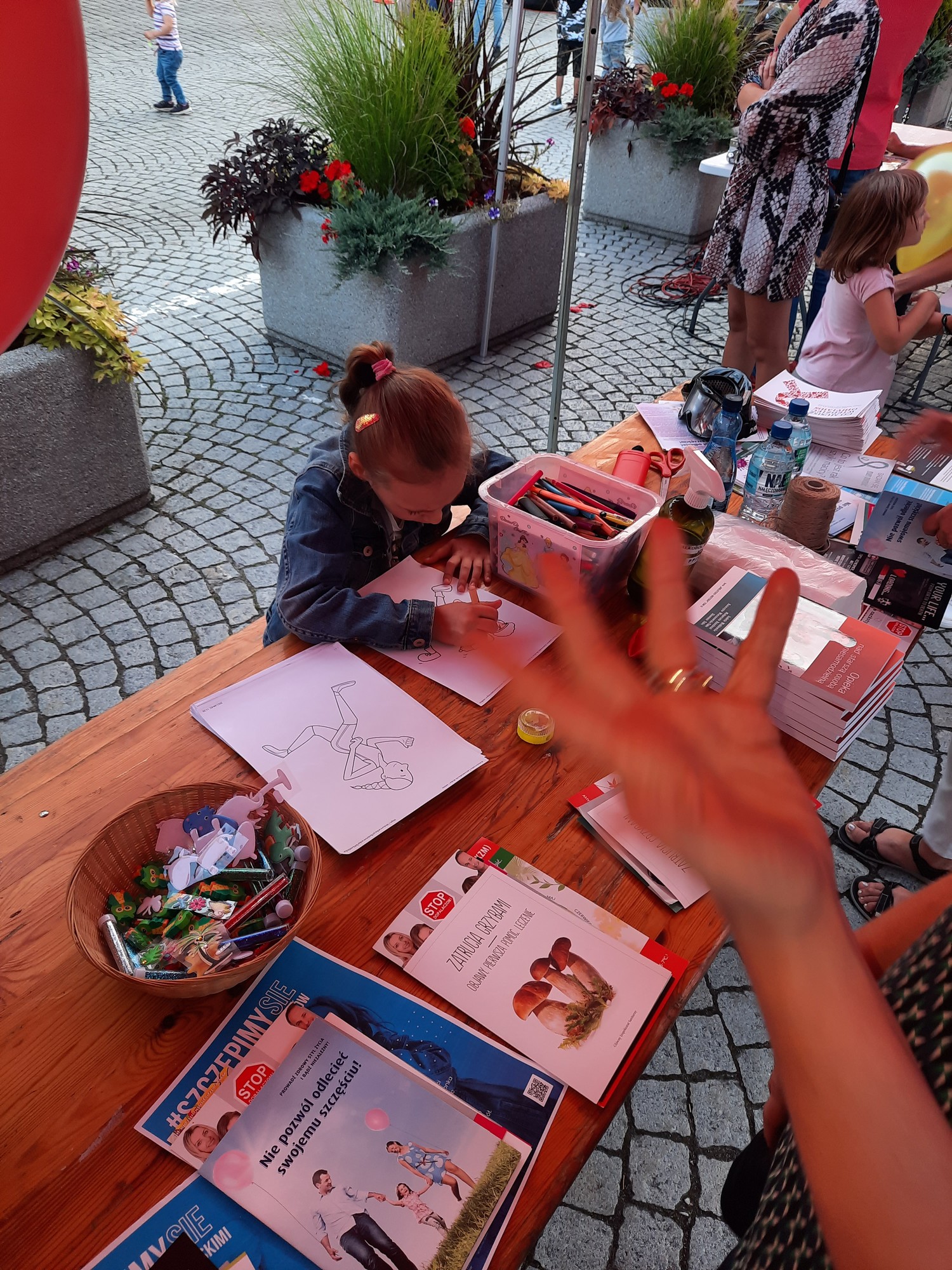 W dniu 4 września bieżącego roku na wołowskim rynku, przeprowadzony został już po raz siódmy- Bieg Flagi. Wśród przepięknej, zabytkowej scenerii Naszego Rynku oraz przy pięknej pogodzie, Powiatowa Stacja Sanitarno-Epidemiologiczna w Wołowie zorganizowała punkt Informacyjno – Edukacyjny. W ramach działań punktu, pracownicy naszej Inspekcji Sanitarnej zorganizowali konkurs plastyczny dla najmłodszych o tematyce prozdrowotnej, którego każdy z uczestników został nagrodzony upominkami. Dla starszych gości stoiska, przekazano szereg informacji na temat zachowań zagrażających Naszemu zdrowiu. między innymi tzw. dopalaczy, negatywnych skutków palenia tytoniu czy spożywania alkoholu. W sposób szczególny największą uwagę zwrócono na konieczność wykonywania szczepień przeciw COVID-19, w ramach kampanii społecznej „Szczepimy Się”. Pracownicy obsługujący punkt informacyjny w sposób bardzo skrupulatny, poparty wiedzą merytoryczną, przedstawili korzyści dla Naszego zdrowia, wynikające z zaszczepienia. W czasie funkcjonowania punktu udzielono również fachowych porad na temat zdrowego odżywiania, ze szczególnym zwróceniem uwagi na trwający sezon grzybobrania, a także uczulano mieszkańców na zagrożenia chorobami odkleszczowymi. Stoisko Inspekcji Sanitarnej cieszyło się ogromnym zainteresowaniem. Nasi goście bardzo chętnie korzystali z przymierzenia tzw. alko i narkogogli, poznając tym samym niepożądane doznania towarzyszące stosowaniu tych uzależniających używek. Podczas blisko sześciogodzinnego funkcjonowania Naszego punktu rozdano kilkaset ulotek poruszających tematykę zdrowia Naszych mieszkańców.