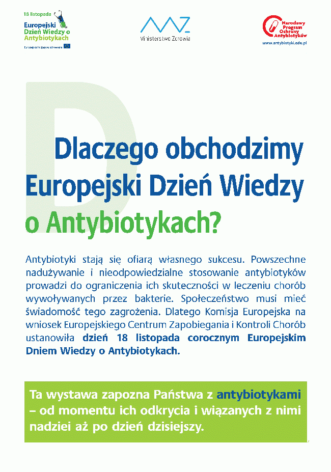 W dniu 18 listopada 2022 r. w krajach Unii Europejskich, już po raz piętnasty obchodzimy Europejski Dzień Wiedzy Antybiotykach (EAAD, ang. European Antibiotic Awareness Day), który został ustanowiony w 2008 roku przez Europejskie Centrum Zapobiegania i Kontroli Chorób (ECDC ang. European Centre for Disease Prevention and Control).