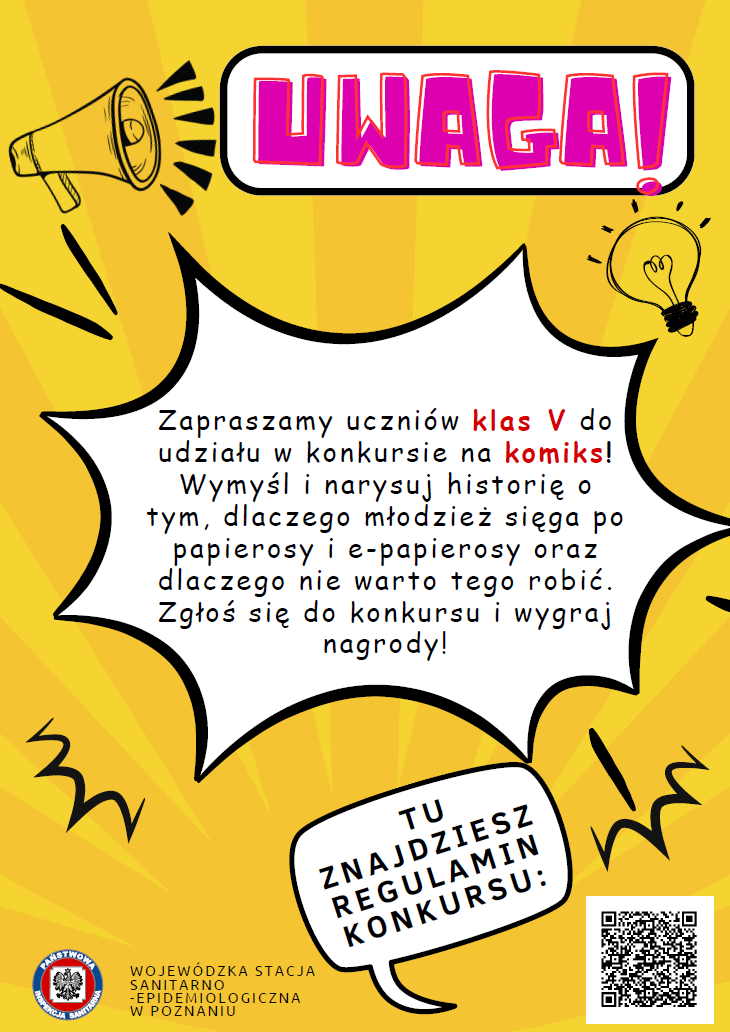 Konkurs dla uczniów klas V szkół podstawowych na komiks pt.: „Palić, nie palić–oto jest pytanie?”