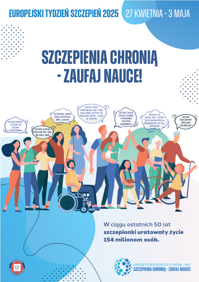 Europejski Tydzień Szczepień to inicjatywa Światowej Organizacji Zdrowia (WHO), który obchodzimy każdego roku w ostatnim tygodniu kwietnia. Tegoroczny termin kampanii to 27 kwietnia – 3 maja. ETS służy popularyzowaniu wiedzy o szczepieniach i ich roli w zapobieganiu szerzenia się chorób zakaźnych oraz ochronie zdrowia i życia ludzi. Europejski Tydzień Szczepień (European Immunization Week) promuje przesłanie o kluczowej roli szczepień w profilaktyce. Hasło Zapobiegaj. Chroń. Szczep. niesie to przesłanie w całym regionie. Przekaz tegorocznego Europejskiego Tygodnia Szczepień podkreśla pilną potrzebę osiągnięcia wysokiego poziomu zaszczepienia i równego dostępu do szczepień w każdej społeczności, aby zapobiec ogniskom chorób zakaźnych teraz i w przyszłości. W wysiłkach na rzecz ochrony zdrowia publicznego poprzez szczepienia nie można pozostawiać nikogo w tyle, nie można zapominać o żadnej grupie społecznej.