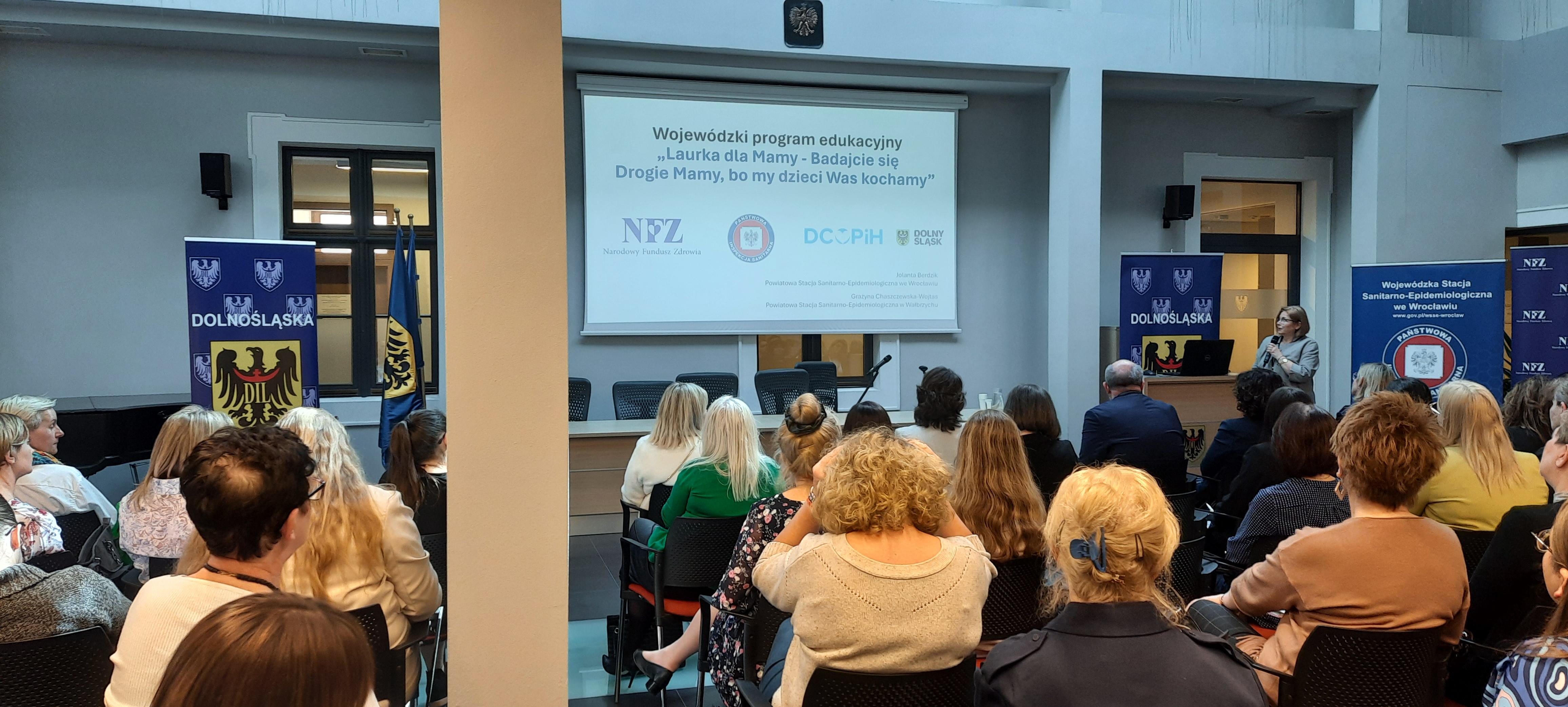 5 kwietnia 2024 r. rozpoczęliśmy realizację wojewódzkiego programu edukacyjnego „Laurka dla Mamy - Badajcie się Drogie Mamy, bo my dzieci Was kochamy”. To inicjatywa profilaktyczna Dolnośląskiego Oddziału Wojewódzkiego Narodowego Funduszu Zdrowia, Dolnośląskiego Centrum Onkologii, Pulmonologii i Hematologii oraz Wojewódzkiej i Powiatowych Stacji Sanitarno-Epidemiologicznych województwa dolnośląskiego. Program objęli honorowym patronatem Wojewoda Dolnośląski oraz Prezes Dolnośląskiej Izby Lekarskiej.