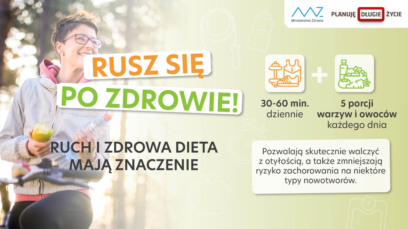 Aktywność fizyczna to nie tylko typowy sport, ale również np. chodzenie po schodach, spacer. Łącznie z dobrze zbilansowanym żywieniem aktywność fizyczna pozwala zapobiec rozwojowi bardzo niebezpiecznej dla naszego zdrowia zarówno nadwagi i otyłości.