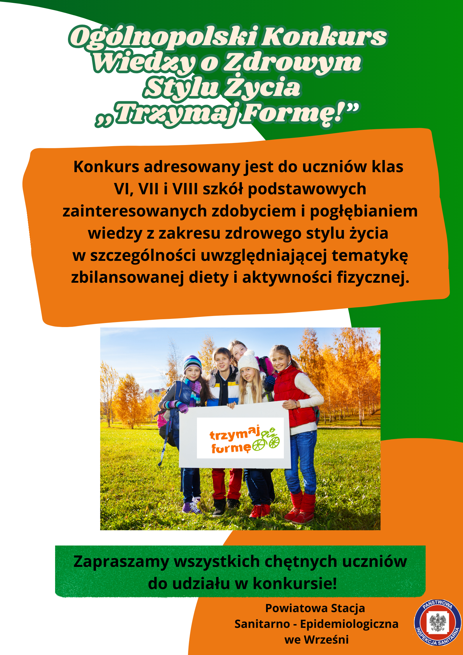 Zapraszamy uczniów klas VI, VII i VIII szkół podstawowych do udziału w XIII edycji Konkursu wiedzy o zdrowym stylu życia „Trzymaj Formę!”.