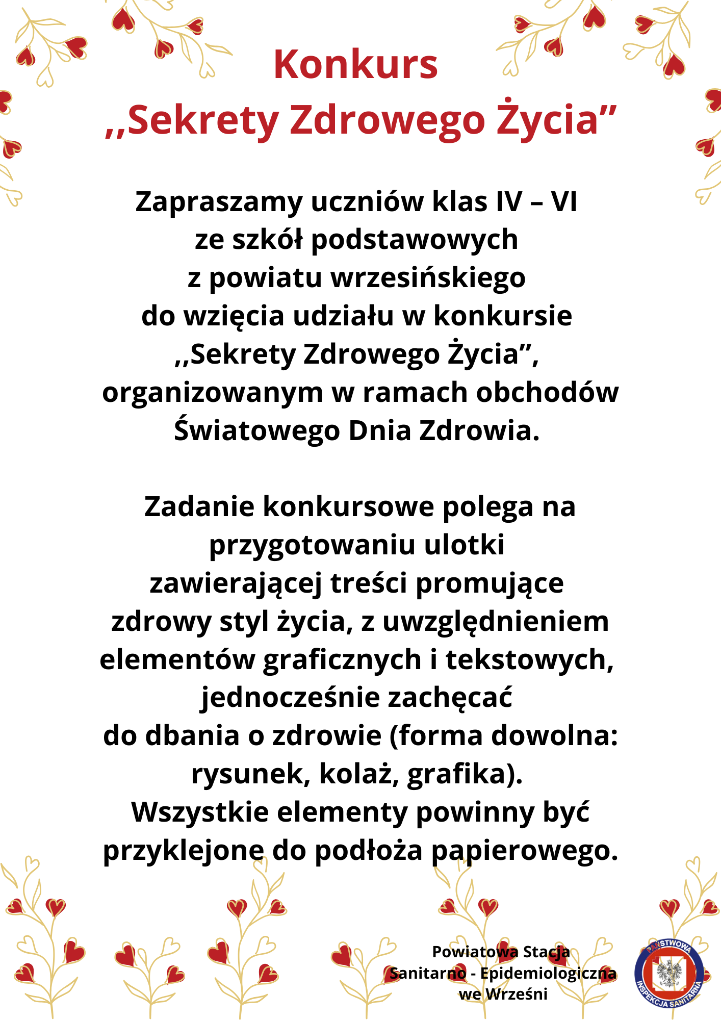 Z okazji obchodów Światowego Dnia Zdrowia serdecznie zapraszamy uczniów klas IV–VI ze Szkół Podstawowych z powiatu wrzesińskiego do wzięcia udziału w konkursie „Sekrety Zdrowego Życia”!
