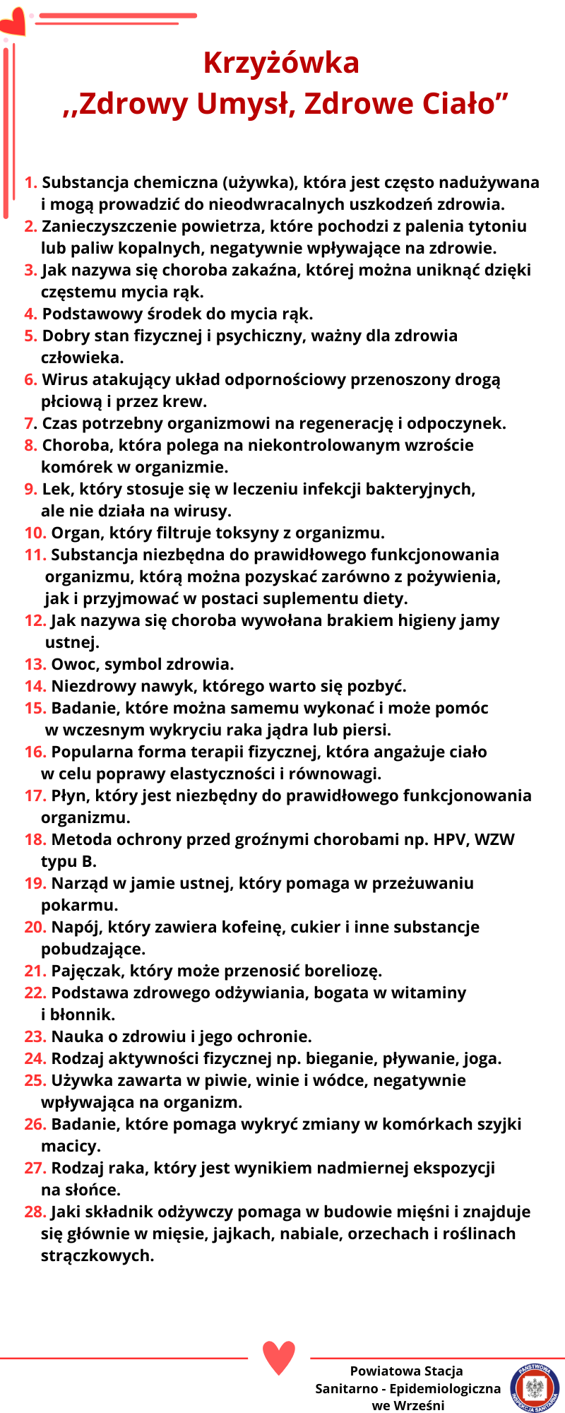 Z okazji obchodów Światowego Dnia Zdrowia serdecznie zapraszamy pełnoletnich mieszkańców powiatu wrzesińskiego do wzięcia udziału w konkursie „Zdrowy Umysł – Zdrowe Ciało”!