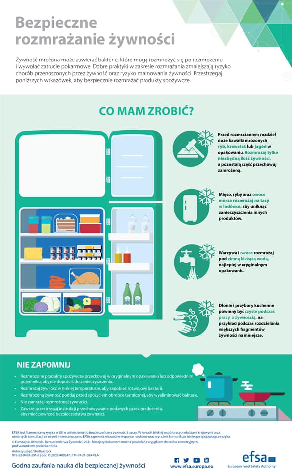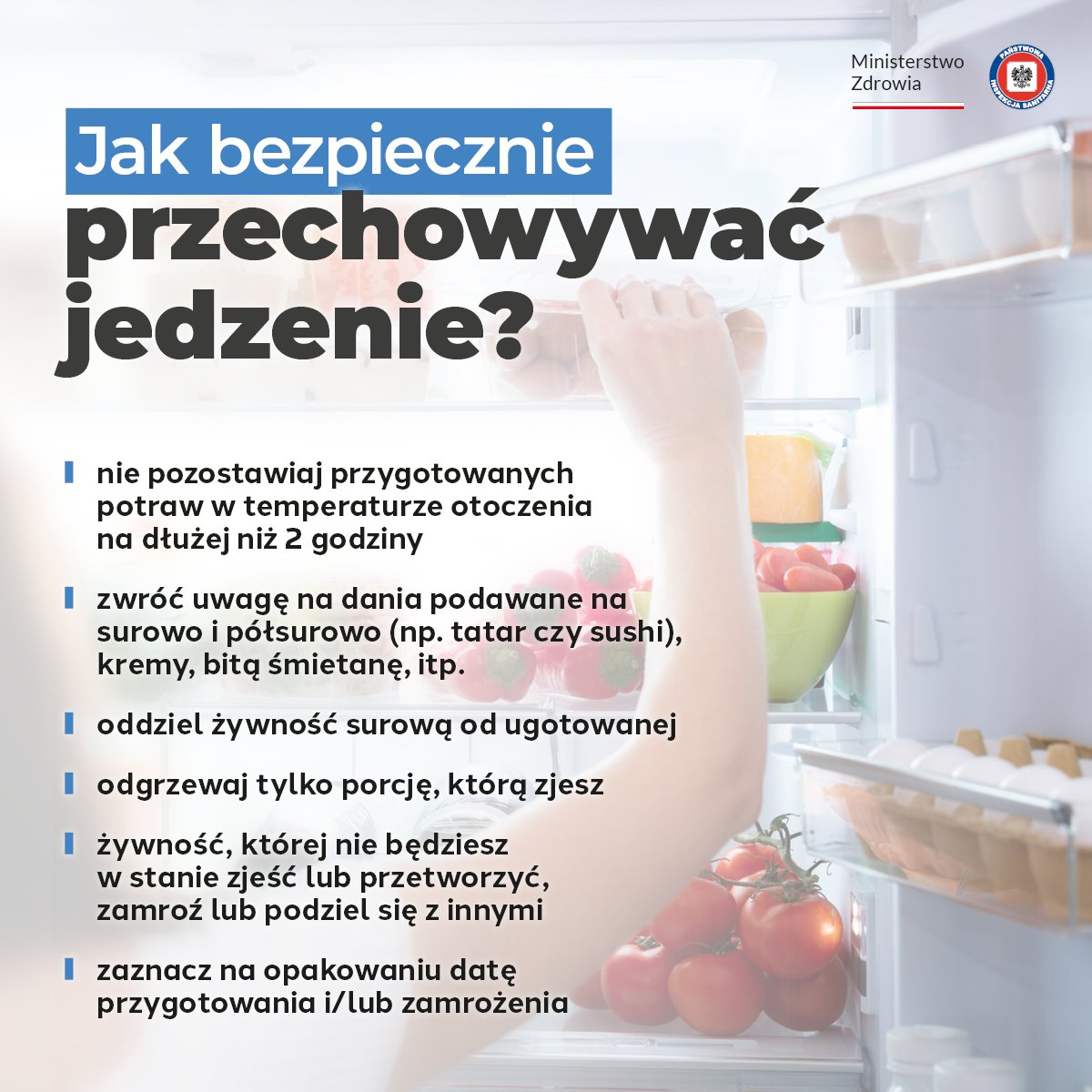 Niestosowanie się do powyższych zaleceń tym bardziej w sezonie letnim, kiedy są wysokie temperatury powietrza sprzyjające rozwojowi mikroorganizmów tj.: salmonelli, gronkowcom, pałeczkom jadu kiełbasianego może doprowadzić do zatrucia pokarmowego. Objawami zatrucia pokarmowego są wysoka gorączka, biegunka, bóle brzucha, mdłości i wymioty.