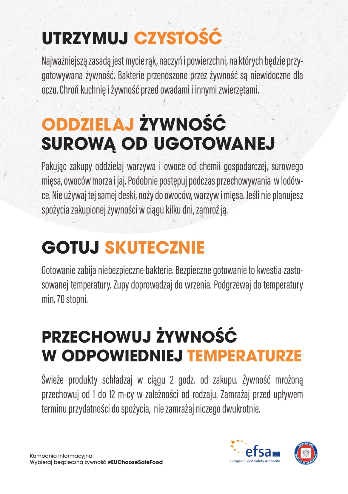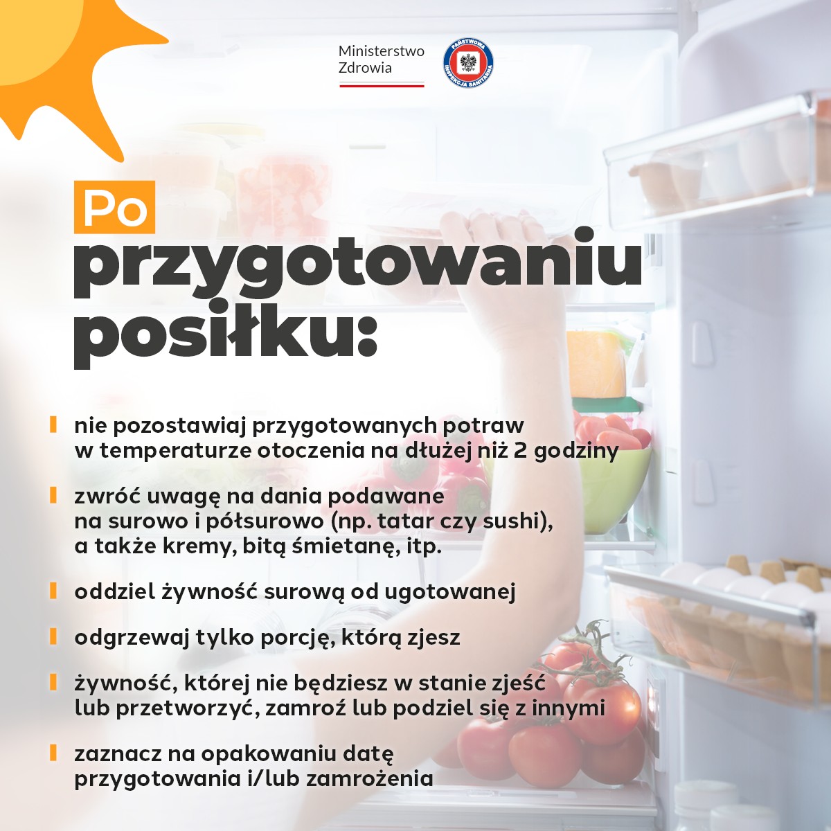Lato to czas odpoczynku, który sprzyja organizacji spotkań przy grillu, korzystania z budek z daniami fast foodami, lodami oraz goframi. Wysoka temperatura oraz nieprzestrzeganie właściwych warunków sanitarnych przy produkcji żywności oraz przy przechowywaniu jak i konsumpcji może doprowadzić do chorób związanych z przewodem pokarmowym. Dlatego, też należy przestrzegać zasady zdrowego postępowania z żywnością podczas: