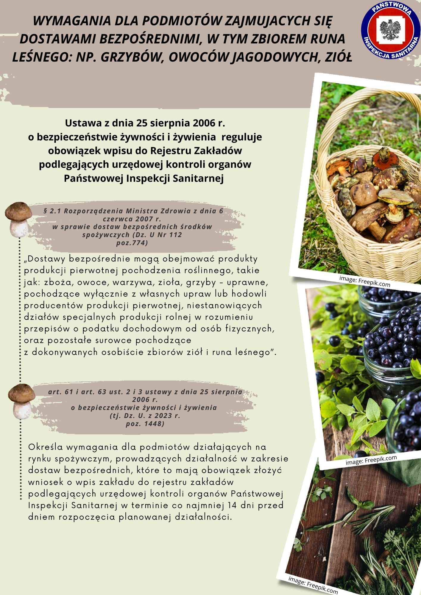 Wymagania dla podmiotów zajmujących się dostawami bezpośrednimi, w tym zbiorem runa leśnego np. grzybów, owoców jagodowych i ziół.