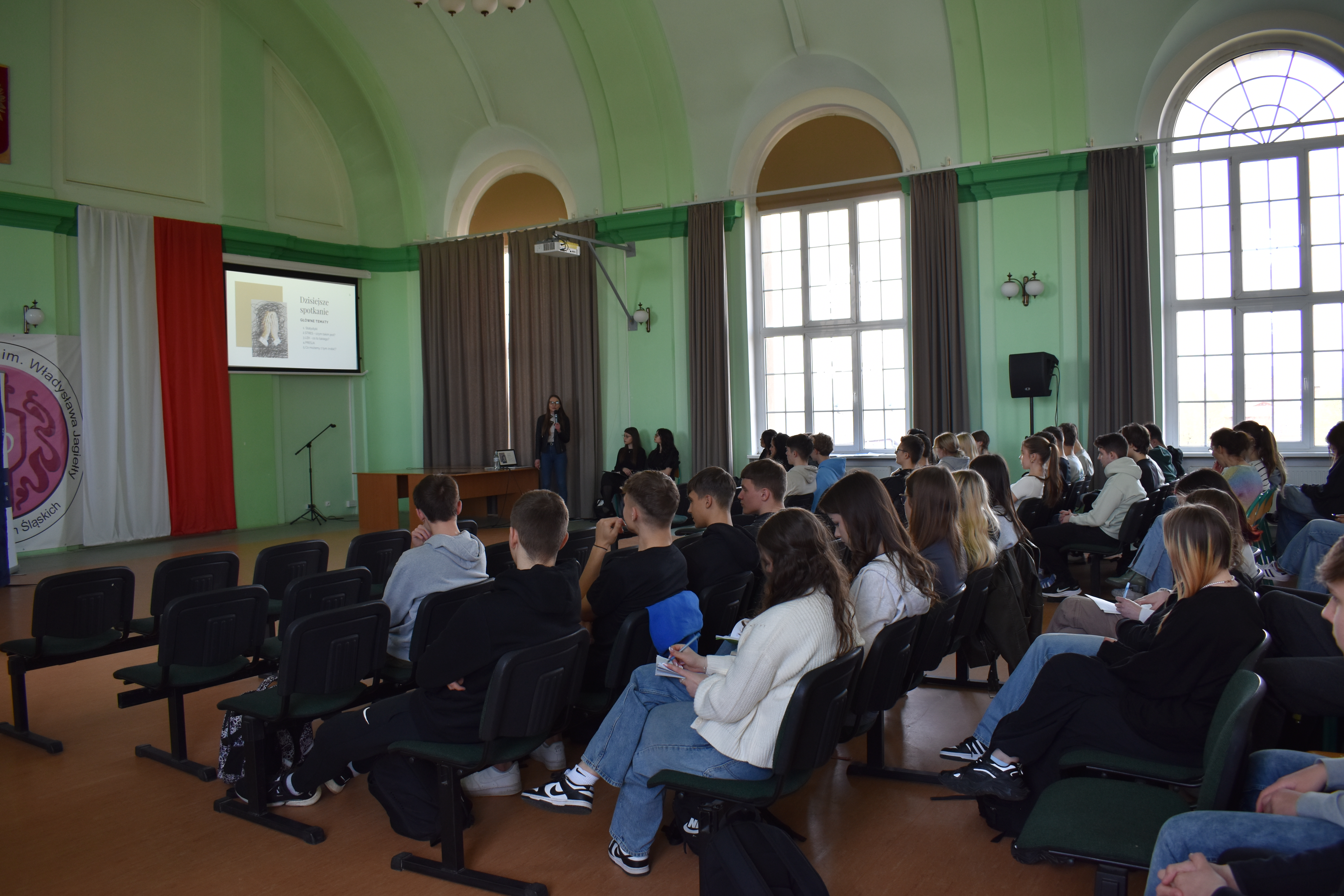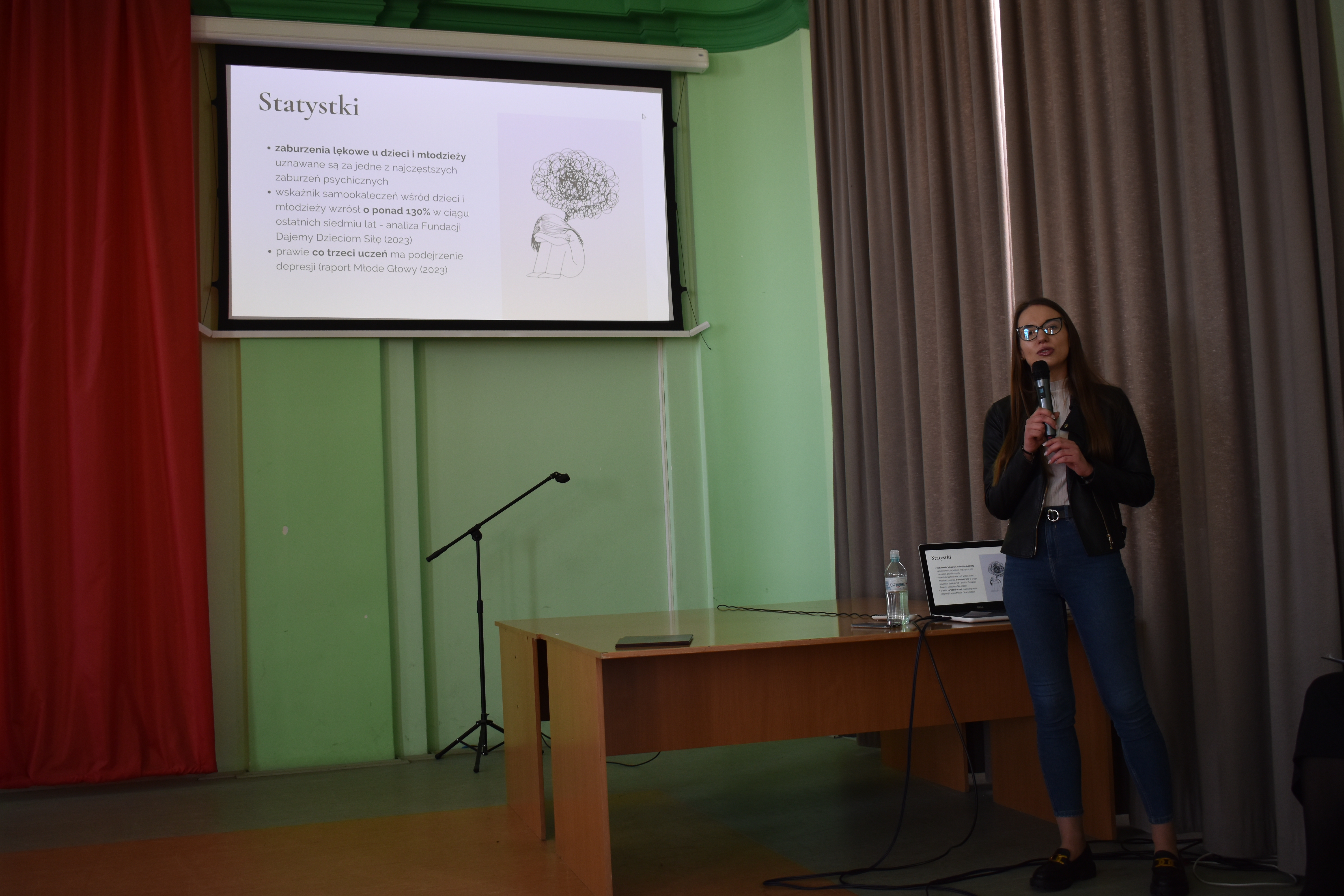 Psycholog mgr Justyna Waliłko, udzielająca wsparcia przy Centrum Medycznym SALUS w Kłodzku, omówiła temat pt. „Epidemia lęku, stresu i presji. Co możemy z tym zrobić?”. W swoim wykładzie wyjaśniła pojęcia stresu, lęku i odczuwanej przez nastolatków coraz większej presji otoczenia zarówno ze strony rówieśników jak i dorosłych. Przybliżyła, co jest ich bezpośrednią przyczyną tych stanów i jak radzić sobie z nimi w obecnych czasach.