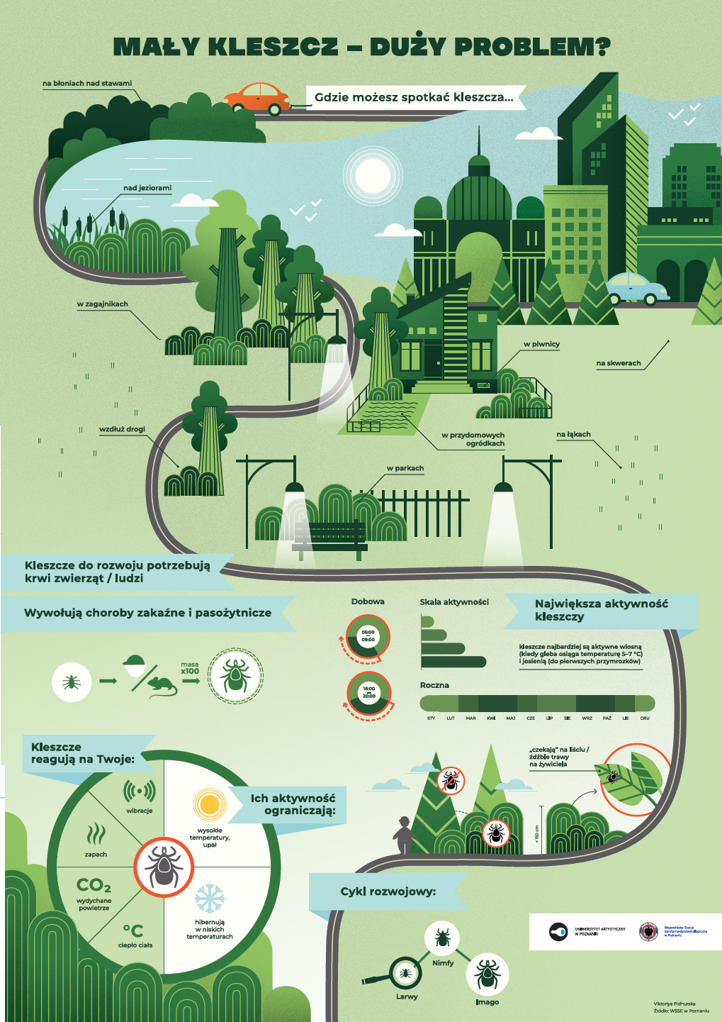 Wiosna i miesiące letnie sprzyjają częstszemu korzystaniu z form wypoczynku na świeżym powietrzu w parkach i lasach oraz noszeniu lżejszego ubioru, co zwiększa równocześnie ryzyko pokąsania przez kleszcze mogące przenosić groźne dla zdrowia bakterie, wirusy i pierwotniaki.