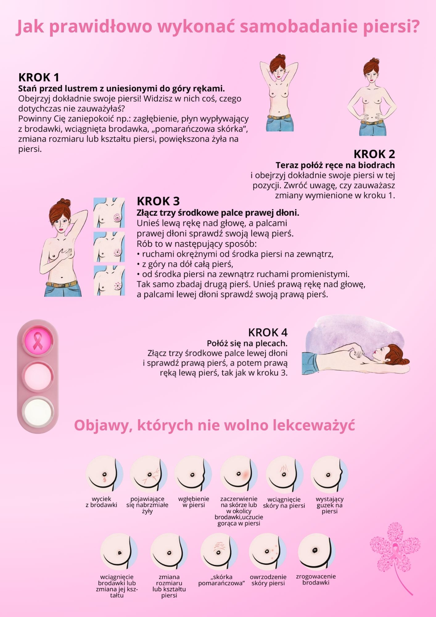 To prosty, bezpłatny i bardzo skuteczny sposób na wczesne wykrycie niepokojących zmian. Wykonuj je regularnie (najlepiej 3-5 dni po miesiączce), dzięki czemu wyczujesz ewentualną różnicę między badaniami. Nauka samobadania nie zajmuje dużo czasu, a ma ogromne znaczenie.